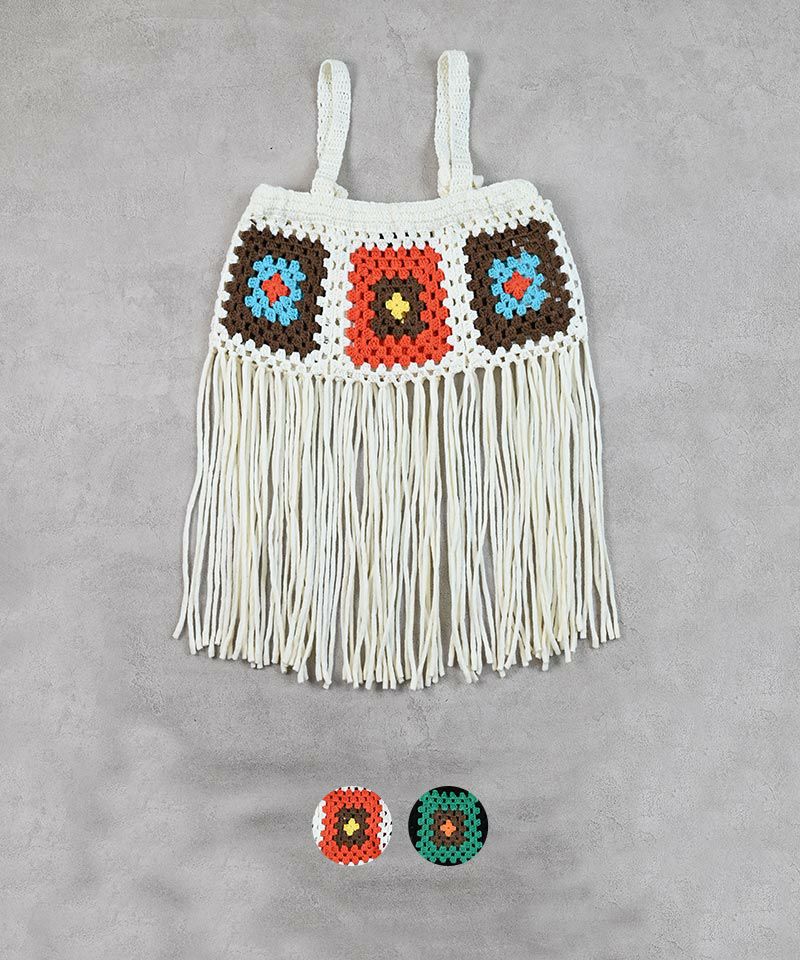 | サイズ | クロシェ幅 | クロシェ丈 | フリンジ丈 | 肩紐(全長) |