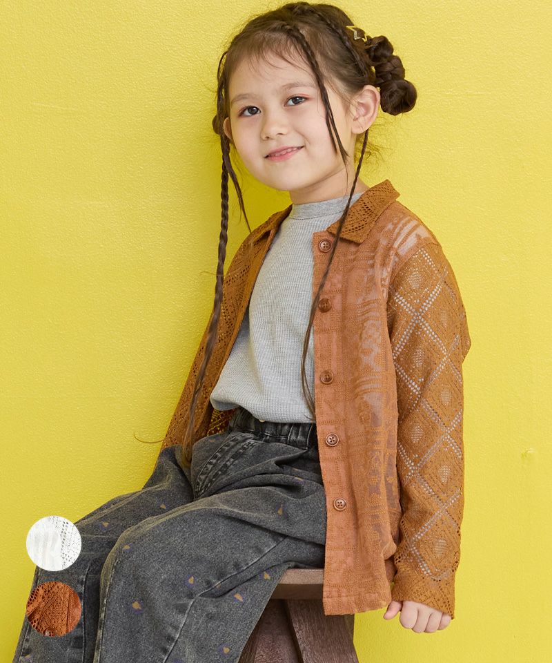 大き目のボタンと、異素材のレース生地の切り替えしがポイント!