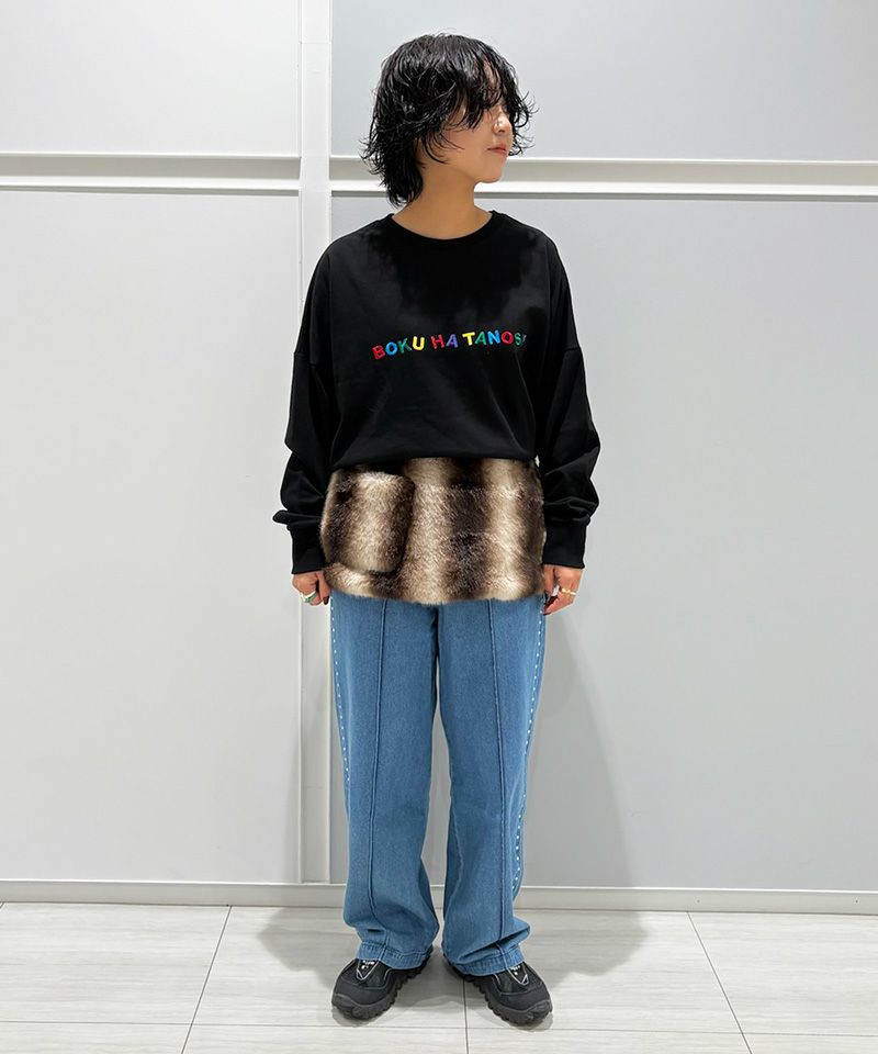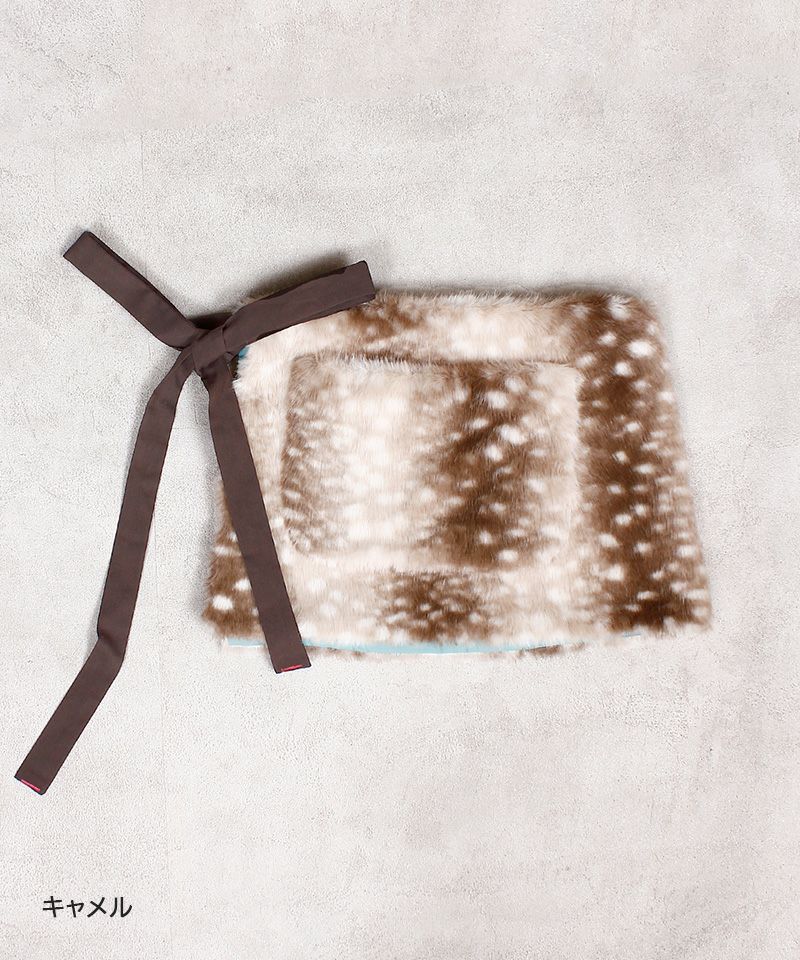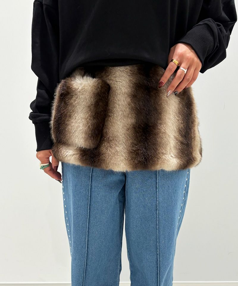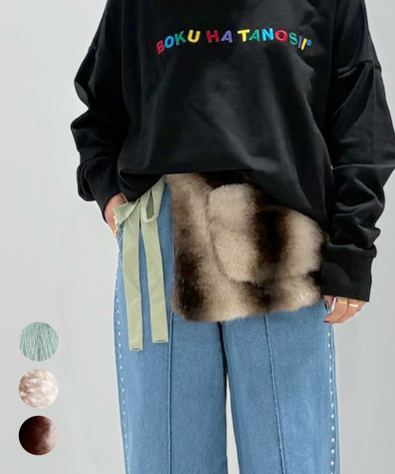 ふわっとした毛並みが冬らしさを引き立て、腰まわりのワンポイントとして程よい個性をプラスしてくれます。