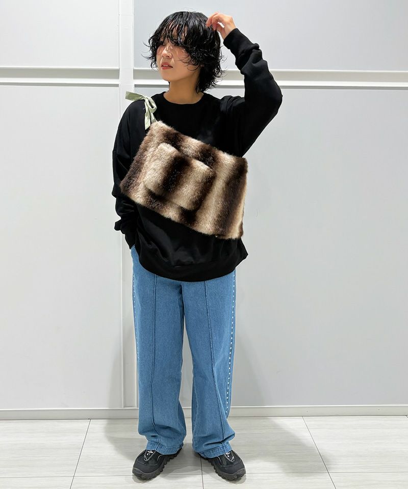 存在感のあるミックスフェイクファーを使った、アクセサリー感覚で楽しめるフリーポケット。