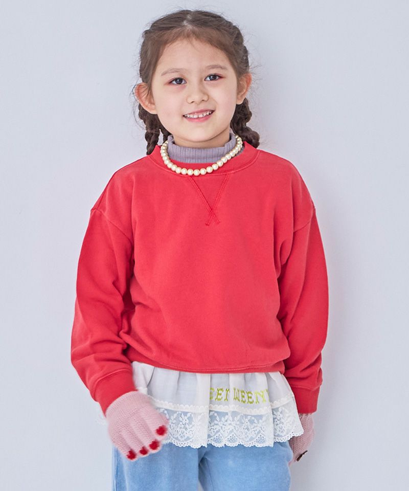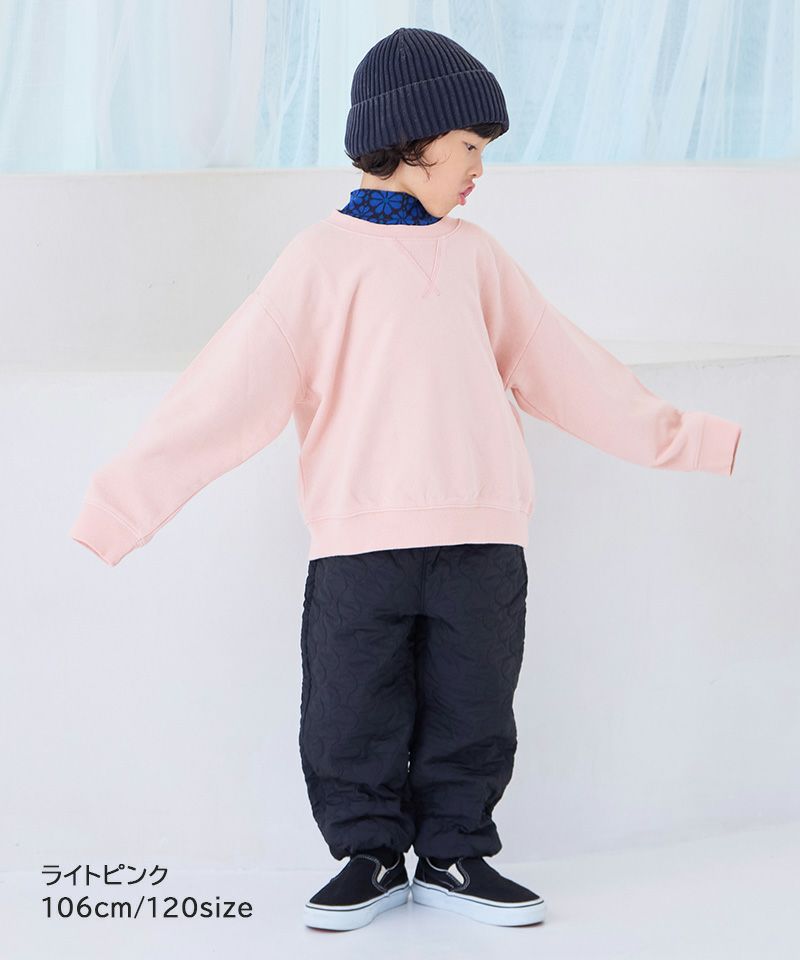 首元のVガゼットやゆとりのあるシルエットが、こどもっぽくなりすぎず大人っぽい雰囲気に仕上げてくれます。