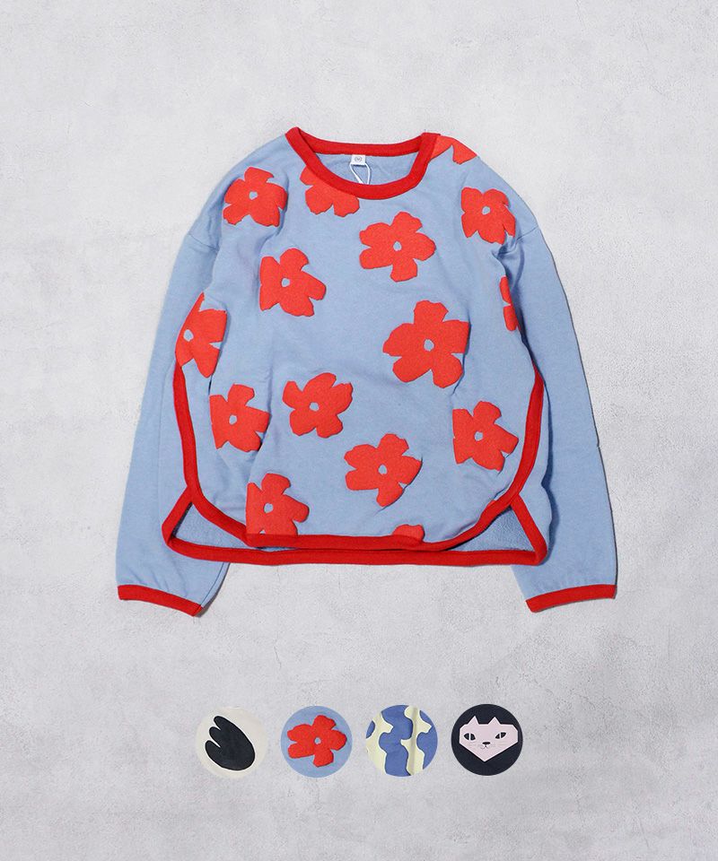 立体感のあるぷっくりプリントが目を引くトレーナー。