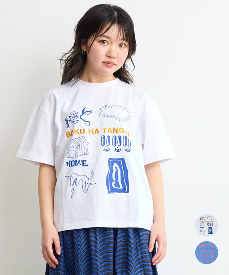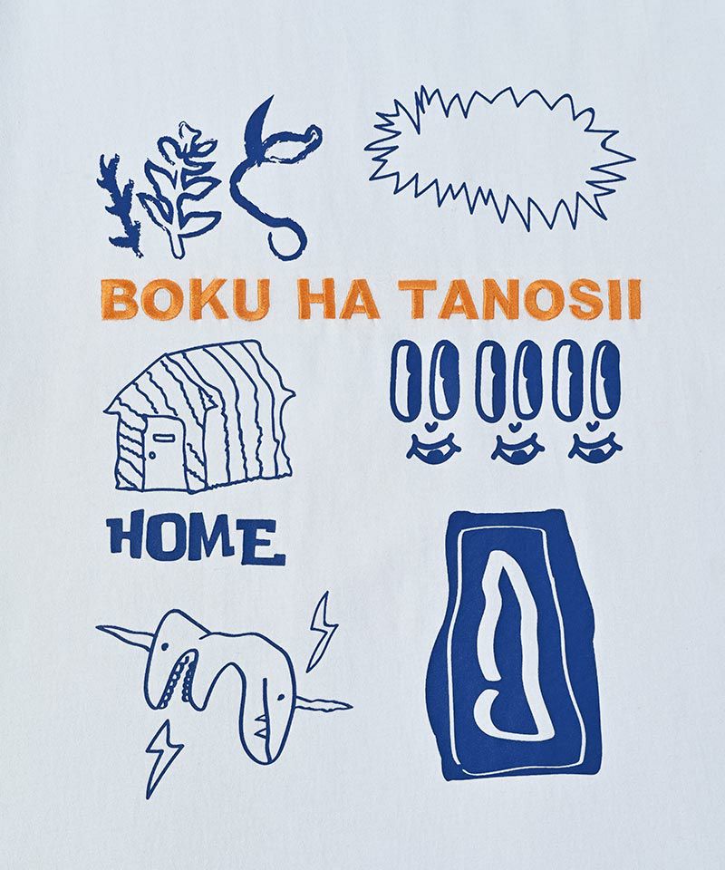 フロントに『BOKU HA TANOSII』の刺繍と遊び心あふれるラクガキプリント。