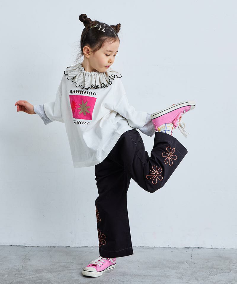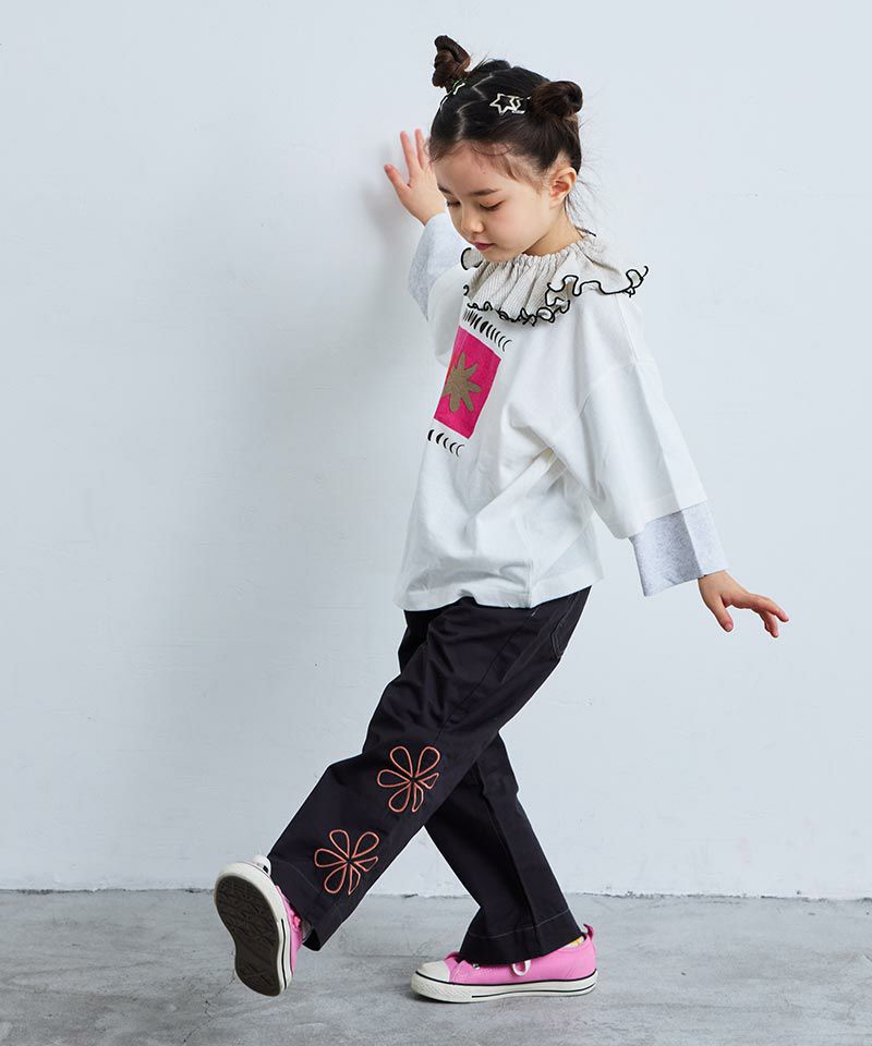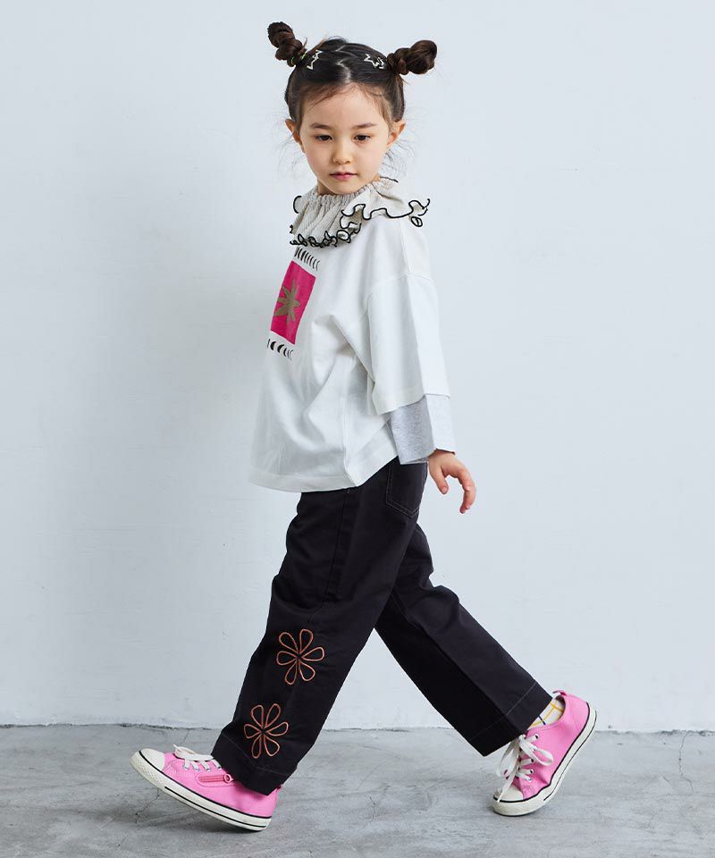 ワンピースとのレイヤードも裾のお花の刺繍がチラっと見えてカワイイ♪