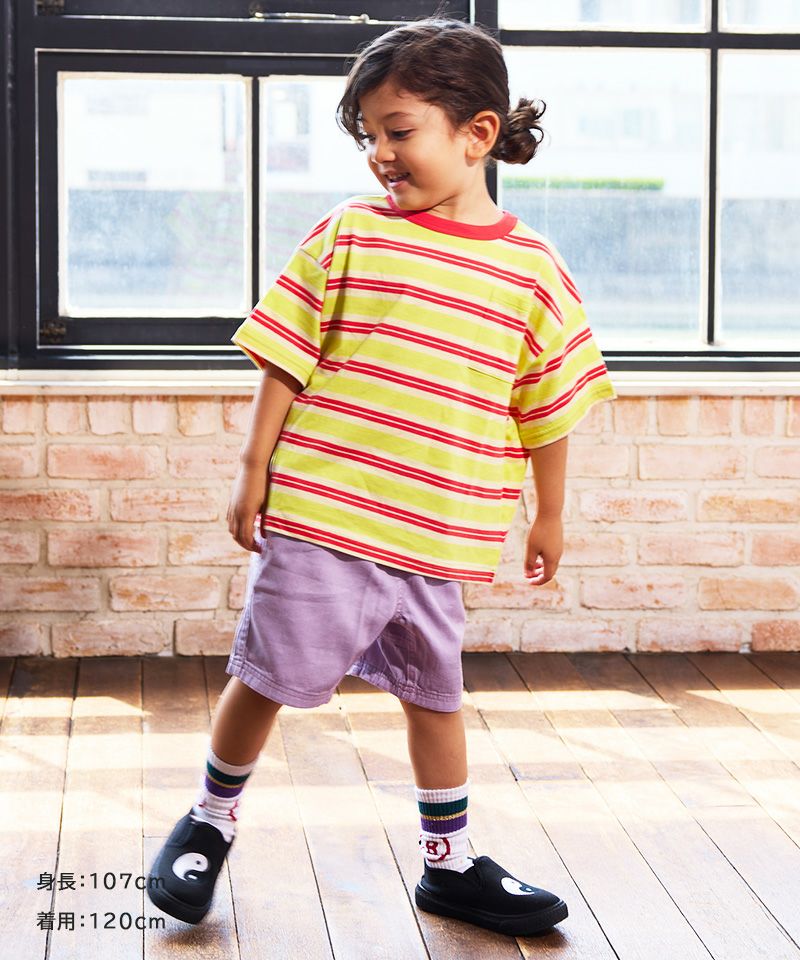 「先染めボーダーワンピース」と同じ柄なので、兄弟姉妹でお揃いリンクコーデもお楽しみいただけます。