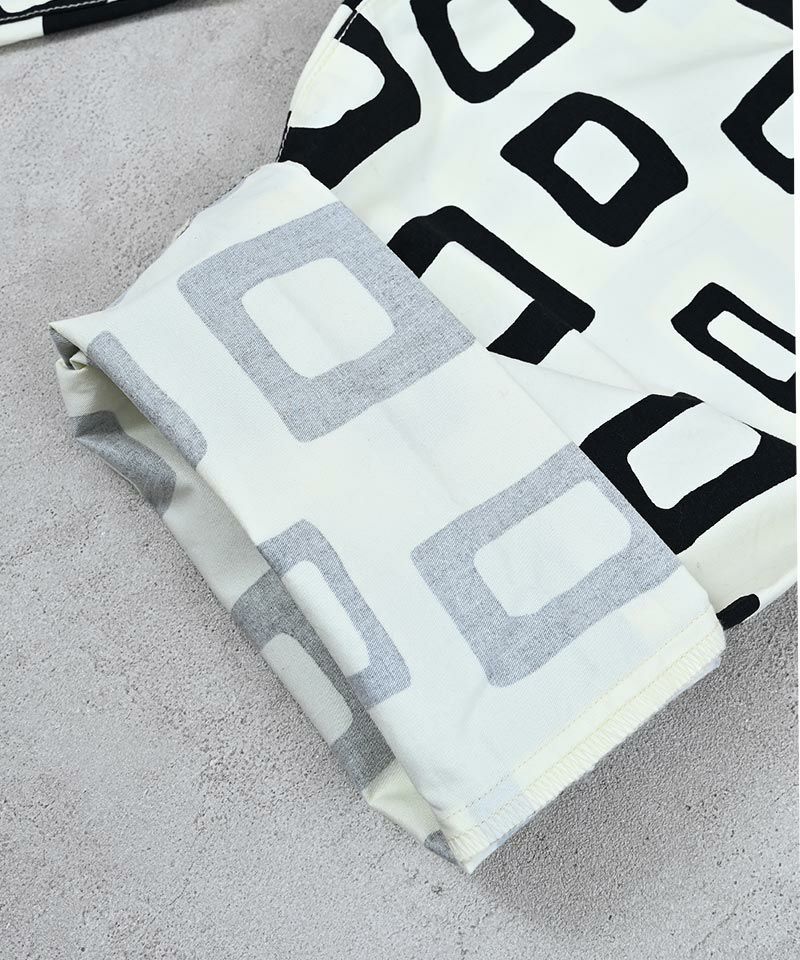 プリント加工の商品は、着用や洗濯を繰り返すことで、プリント部分がひび割れたり、剥がれたりする場合があります。また、プリント面同士が触れ合う状態で保管すると、くっついたり剥離したりすることがありますので、重ねて保管しないようご注意ください。