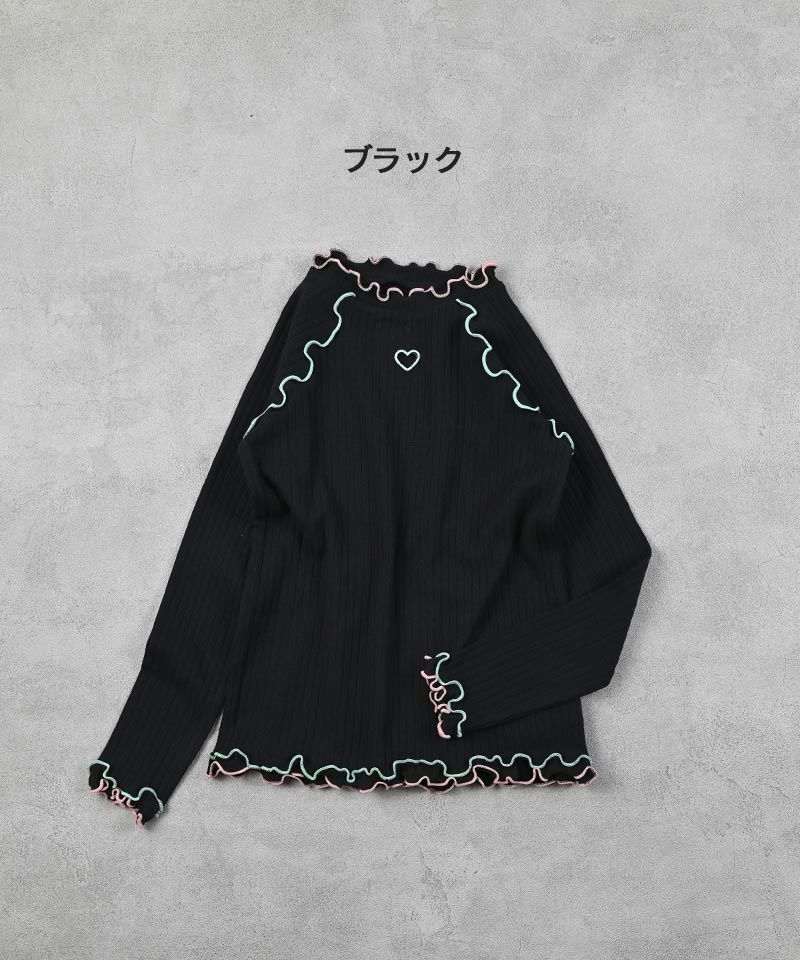 胸元にハート型の穴あきが施されているリブニットトップスです。