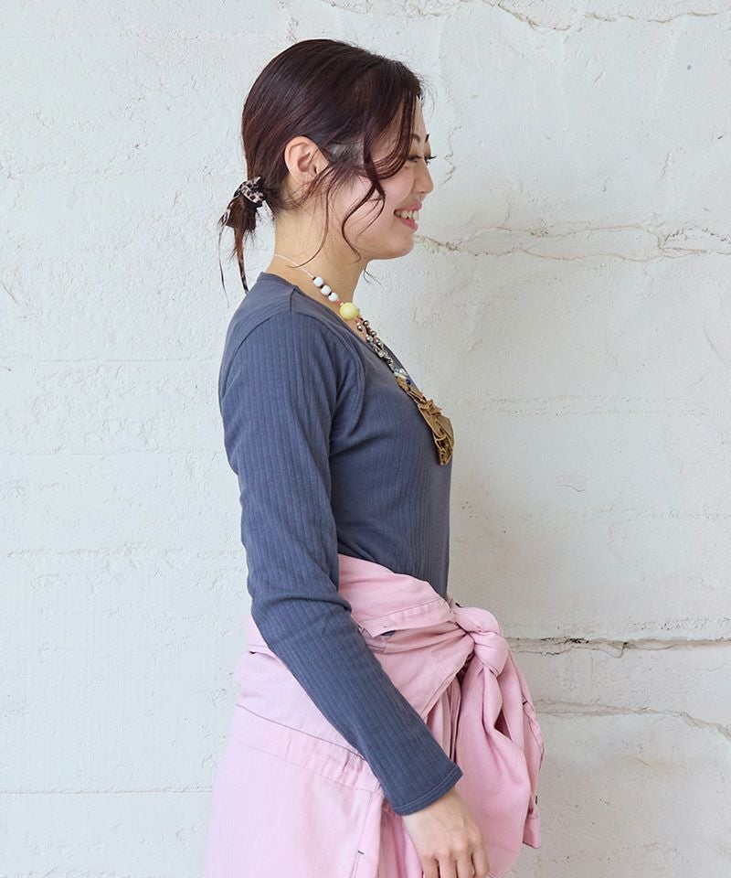 ・細めリブの縦ラインですっきり見えして合わせやすい