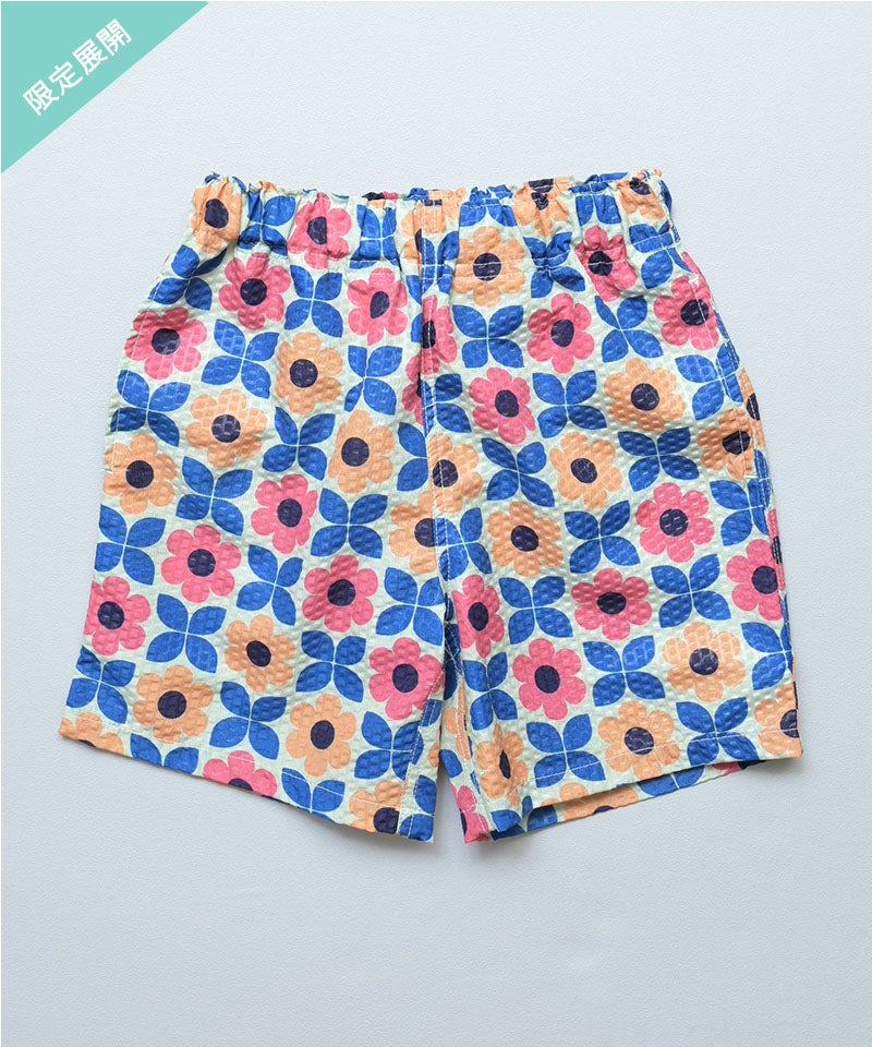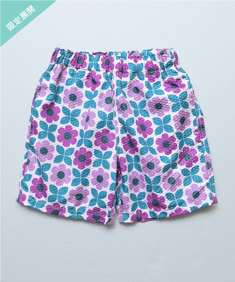 【UVカット/速乾性/シワになりにくいイージーケア】POKOPOKOドライ総柄ショートパンツ