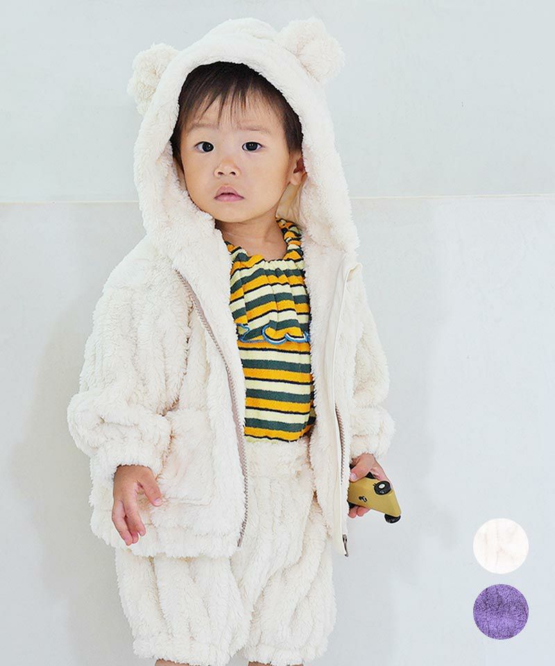 フードには小さな耳をつけ、子どもらしいキュートさをプラスしました。