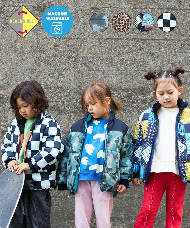 【マシンウォッシャブル】リバーシブル総柄スタンドカラーブルゾン