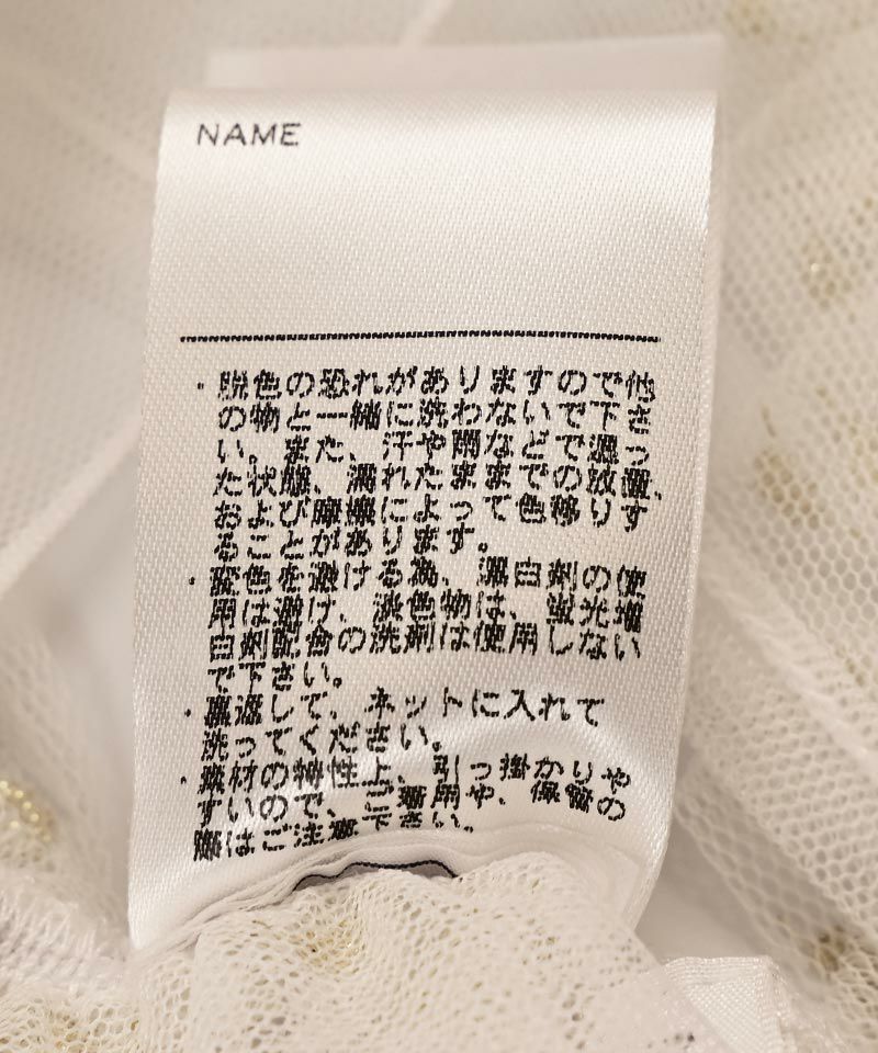 | 素材: | 【チュール(無地)】ナイロン 100% 【チュール(柄)】ナイロン 97% ポリエステル 3% |