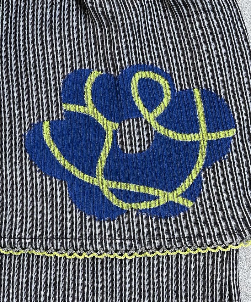 大きくデザインされたモチーフと、裾のステッチ配色がポイント。