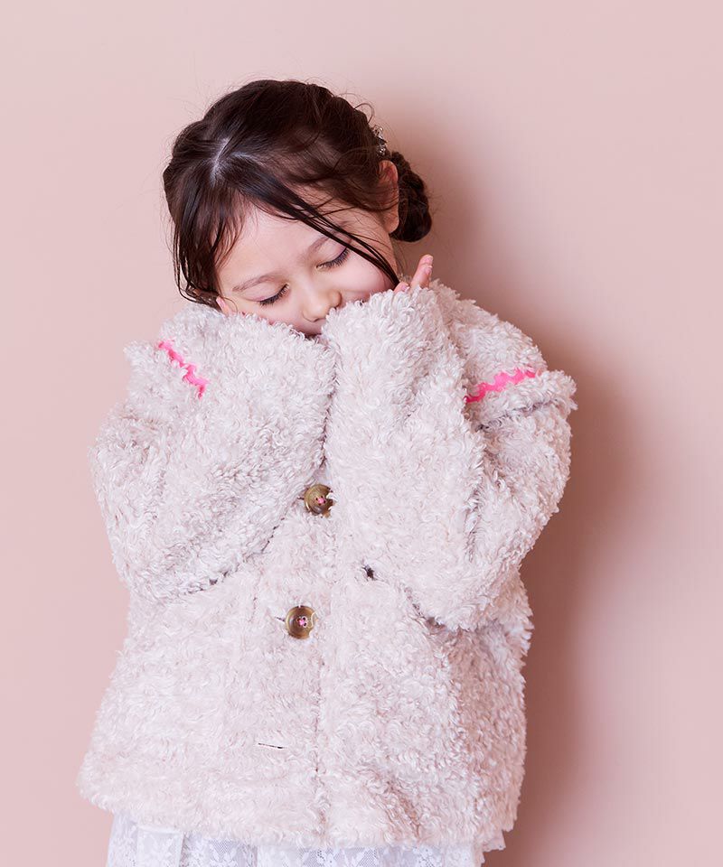 ふわふわモコモコのプードルボア素材を使ったジャケット。