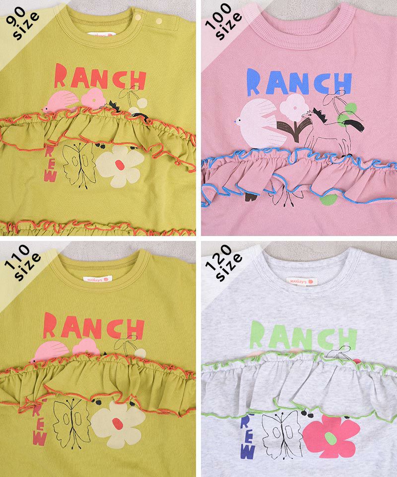 裾にもたっぷりフリルを重ね、動くたびにふわっと揺れる女の子らしいシルエットに仕上げています。
