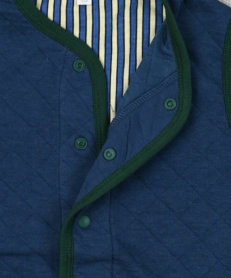 お子様が1人でも着脱しやすい、前開きのスナップボタン仕様。