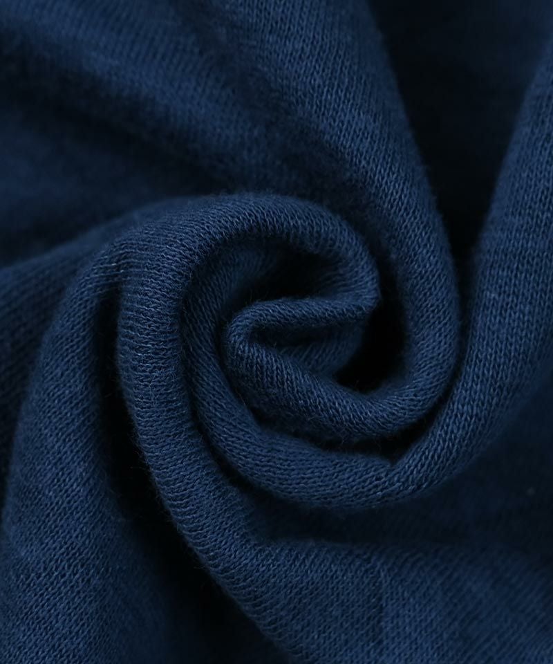 柔らかく肌ざわりのよい生地感で、ポリエステル混なので速乾性があります。