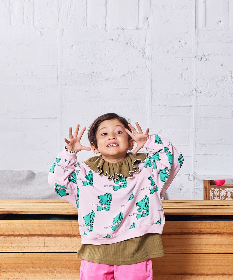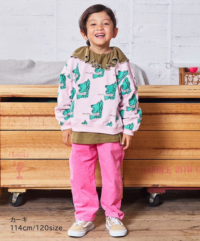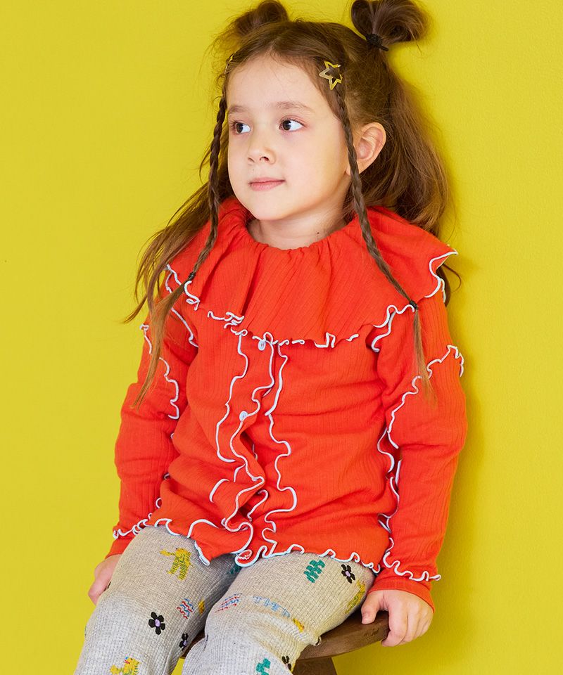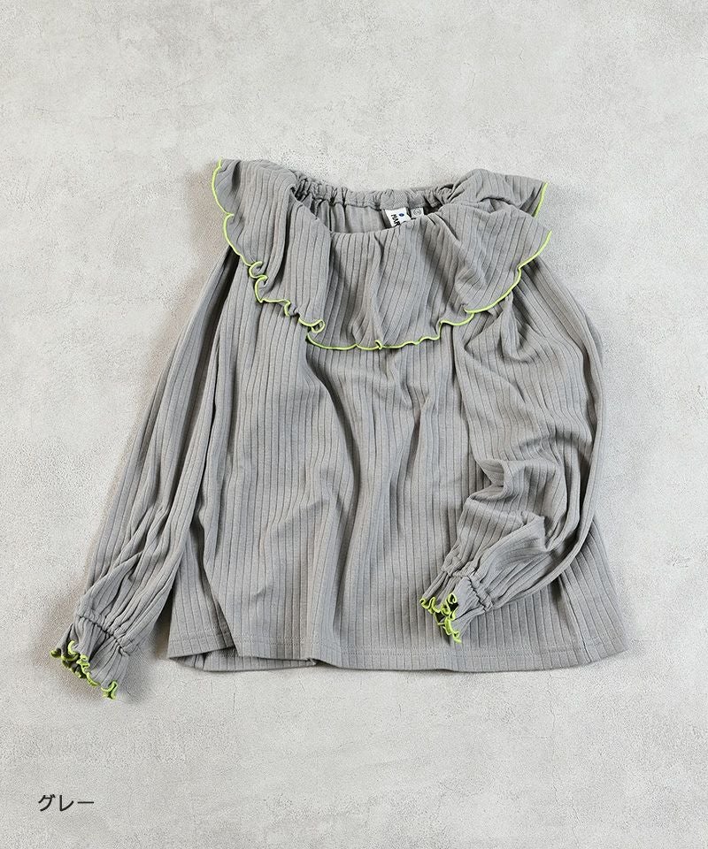 首元と袖口はゴム仕様にで、ふんわりとしたスタイルに。