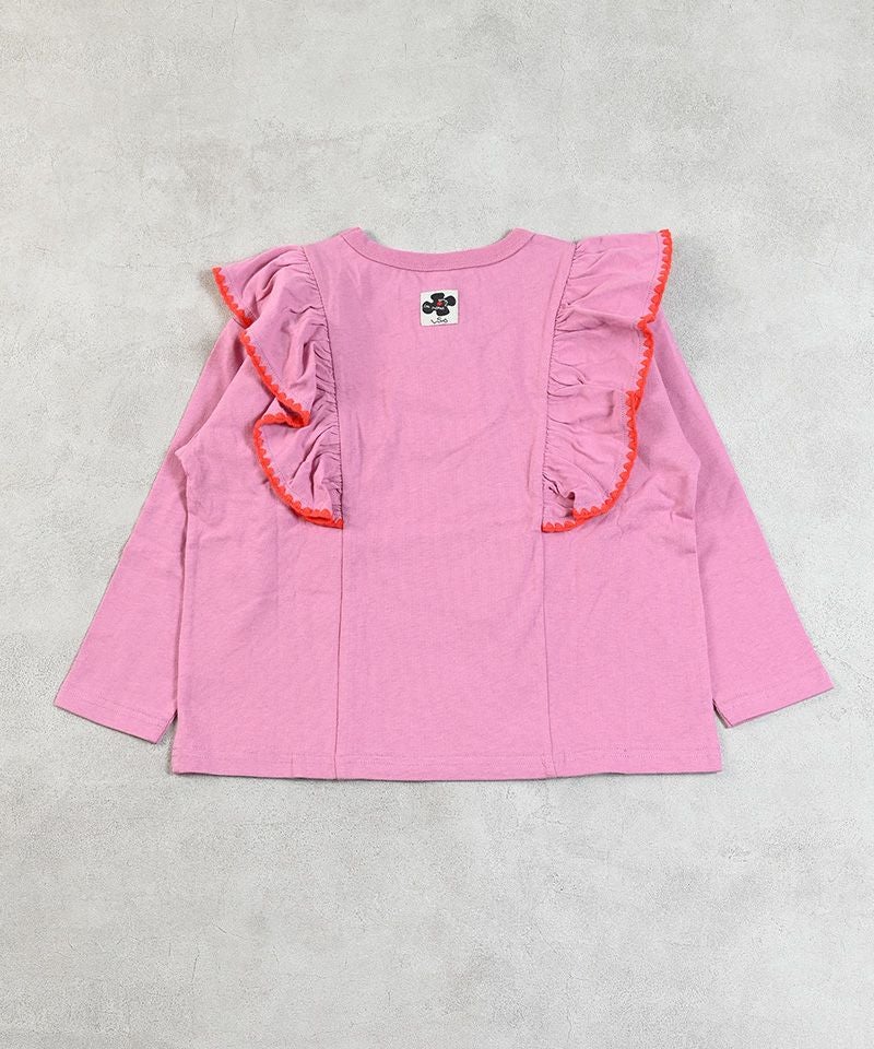 胸元から背中にかけてギャザーたっぷりのフリルが印象的。