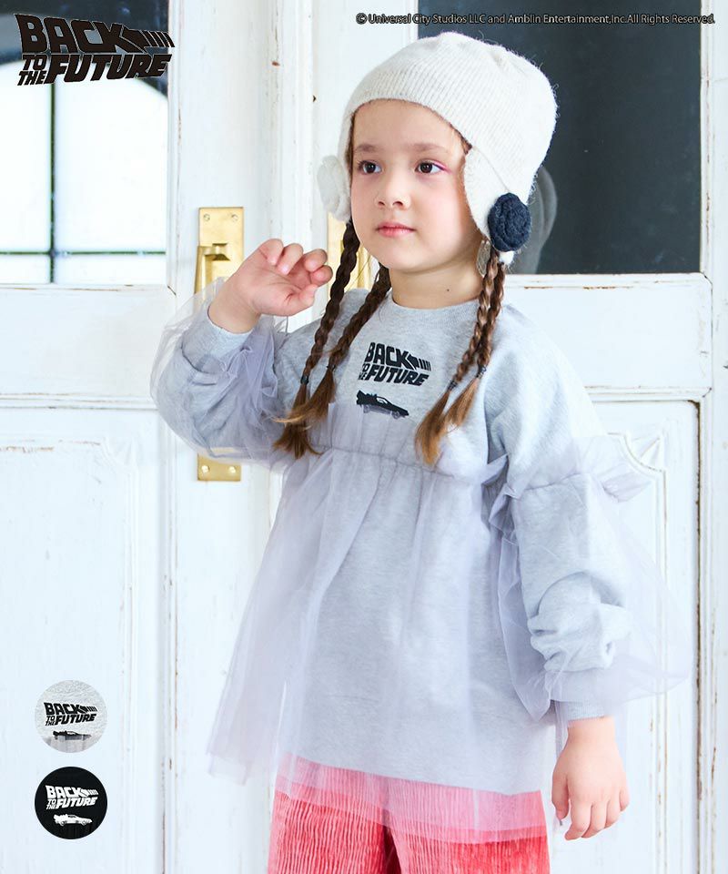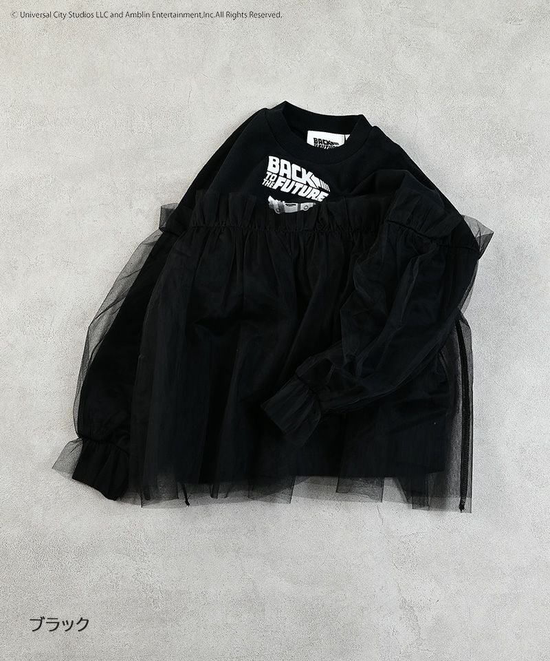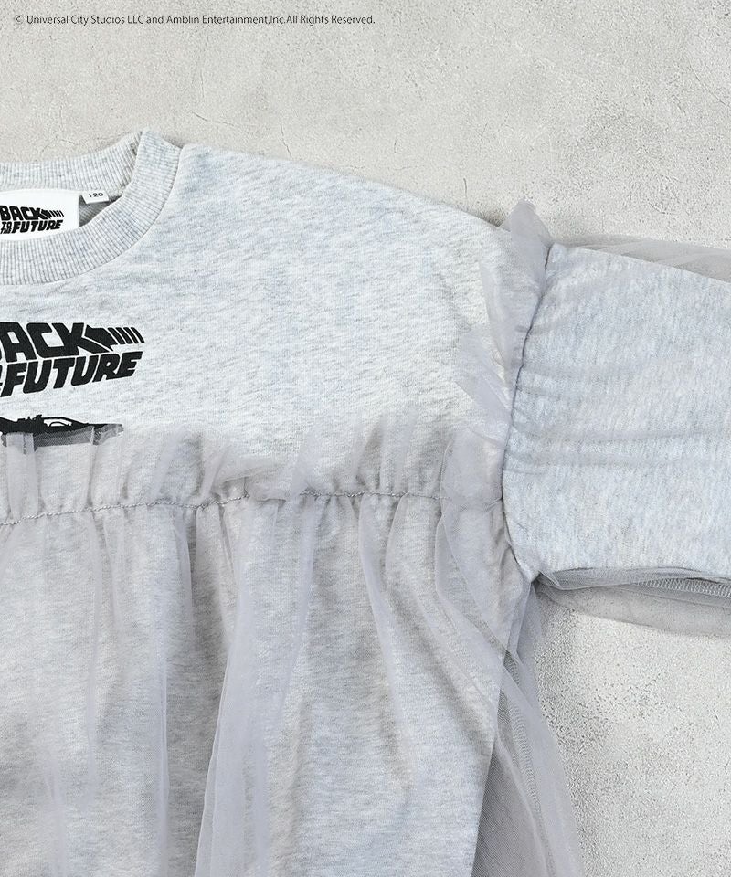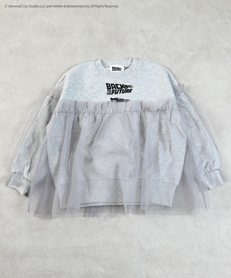 映画『BACK TO THE FUTURE』』のロゴプリントに、チュール素材をドッキングした別注トレーナー。