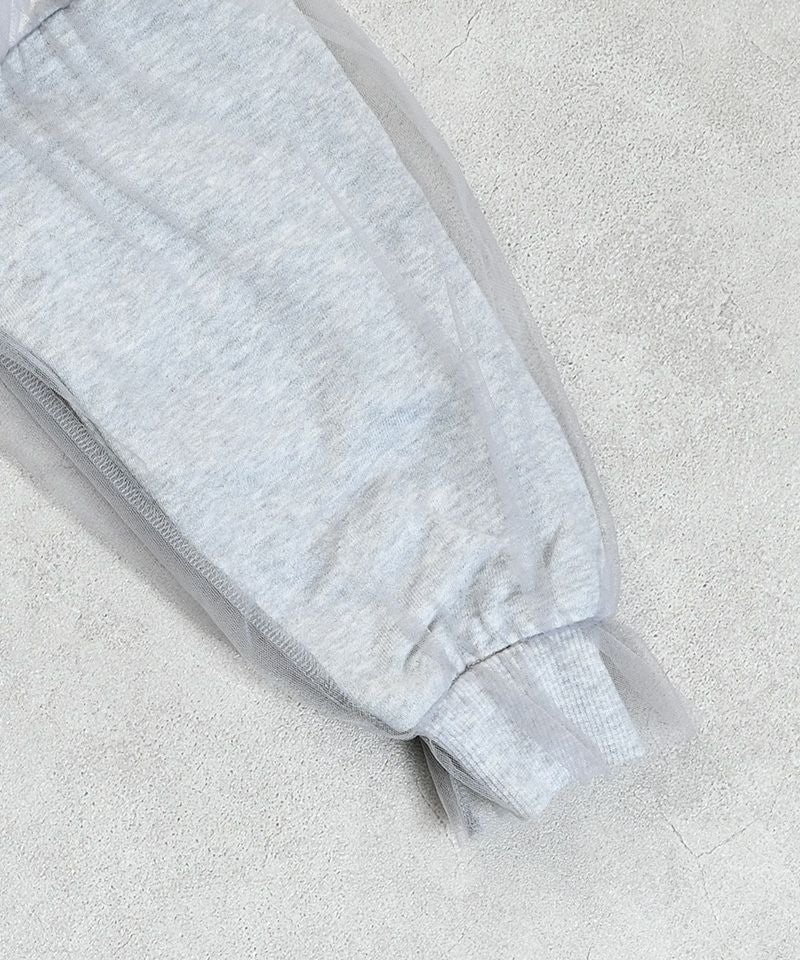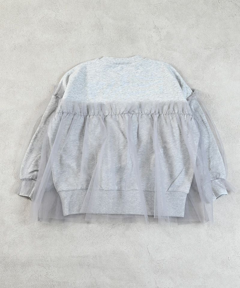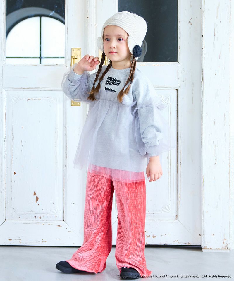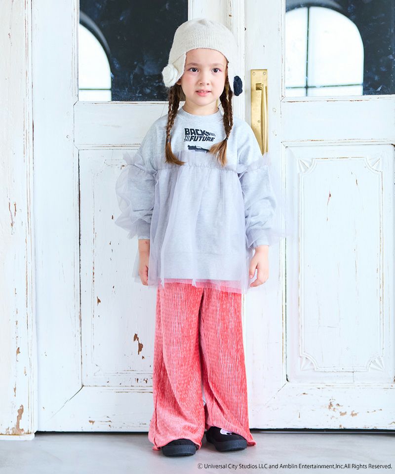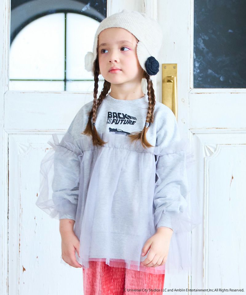 映画『BACK TO THE FUTURE』』のロゴプリントに、チュール素材をドッキングした別注トレーナー。
