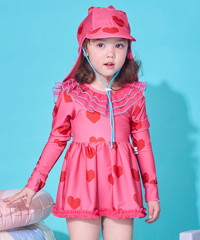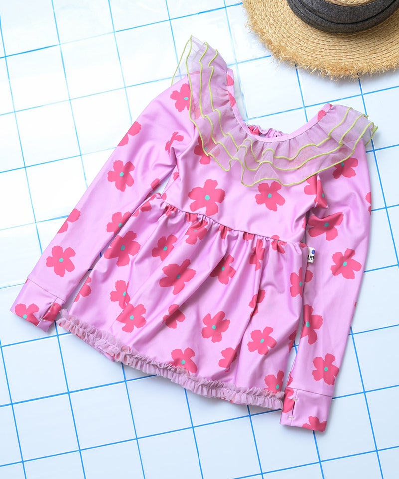 【本日販売開始】【水着】ビッグフリル長袖ワンピース