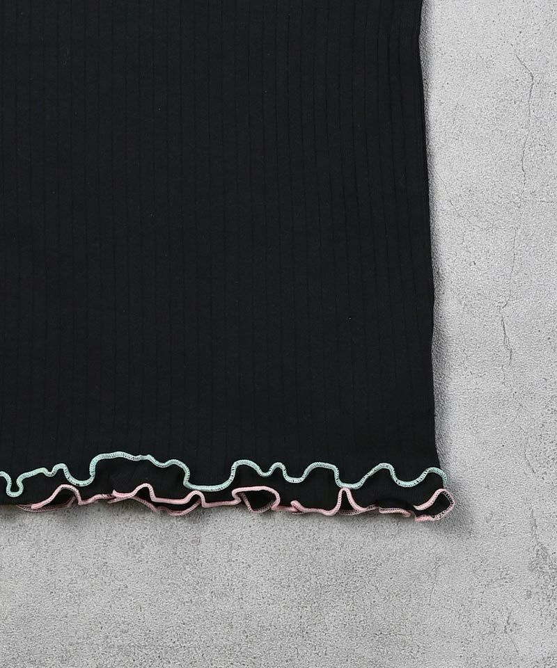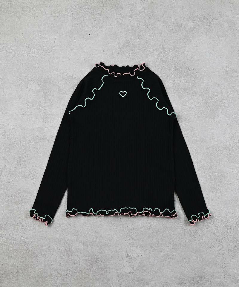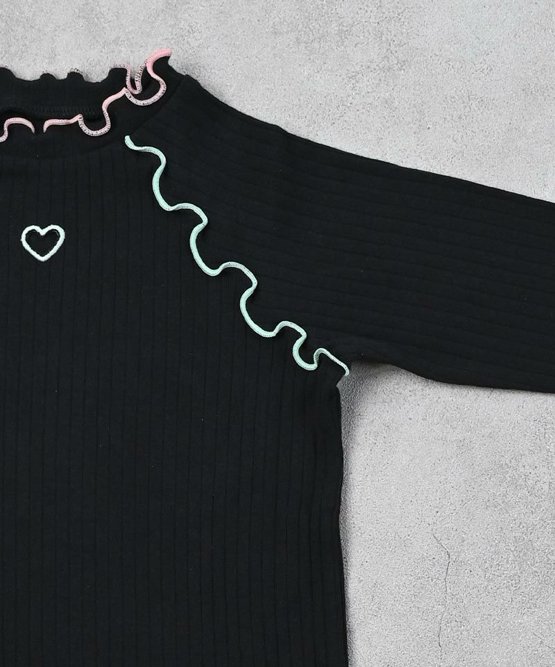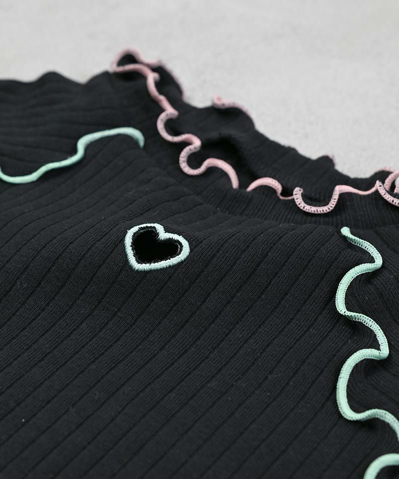 胸元にハート型の穴あきが施されているリブニットトップスです。