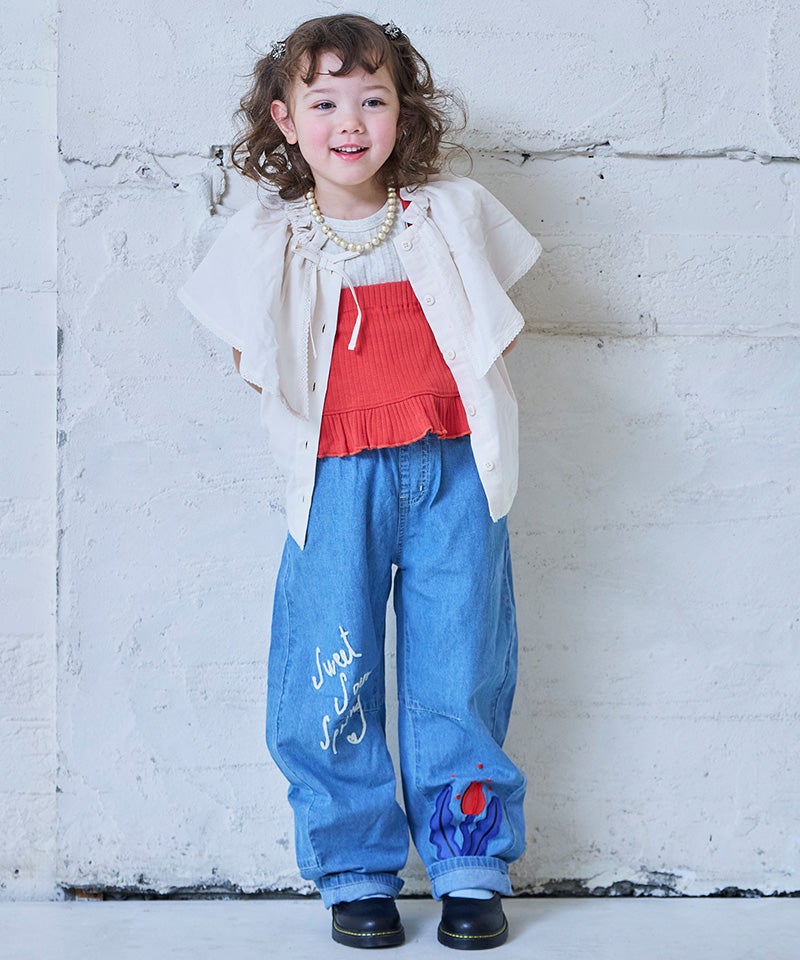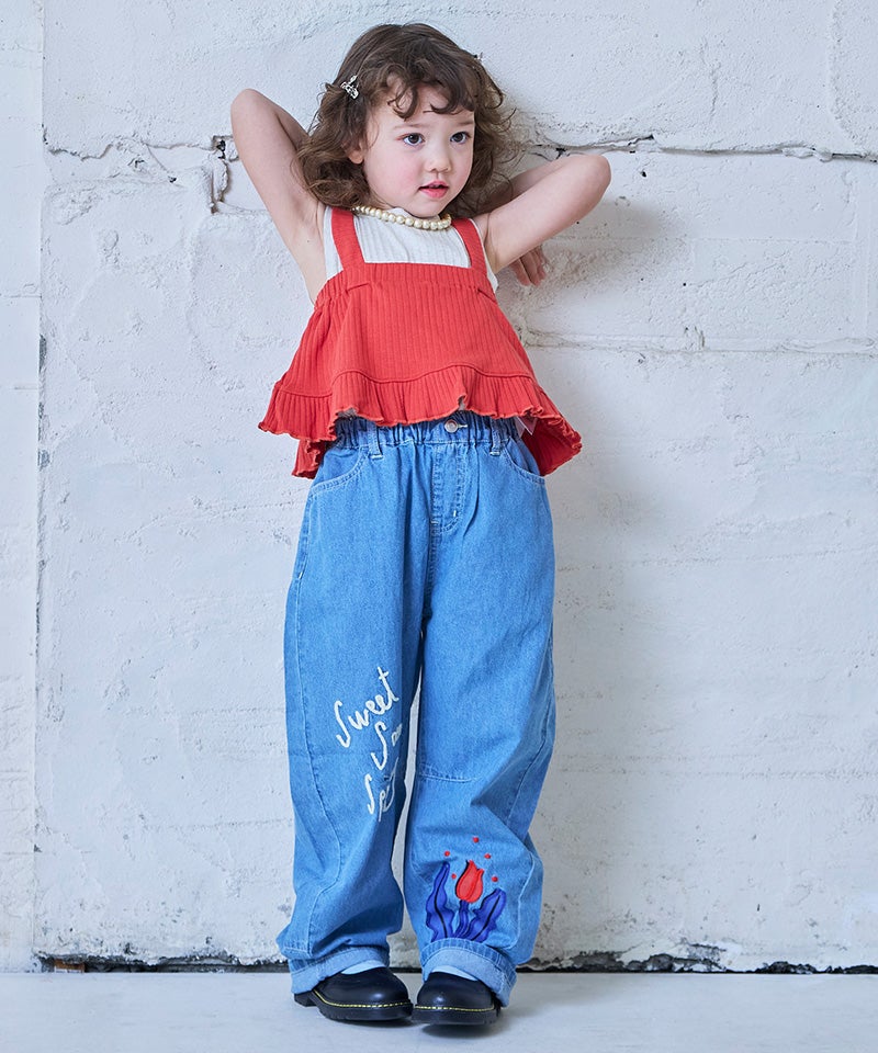【親子お揃い】デニムサイドフリルバギーパンツ