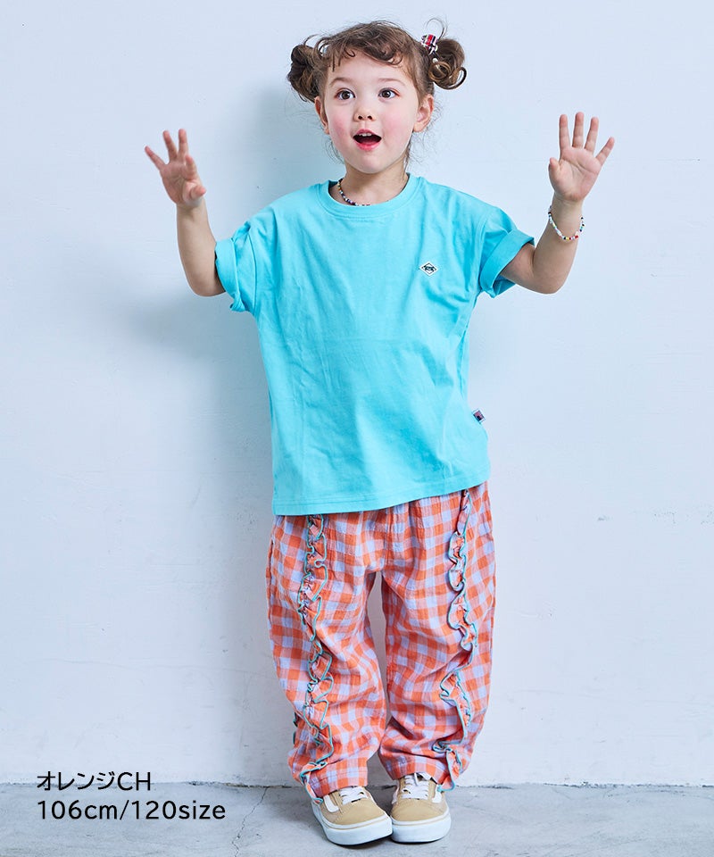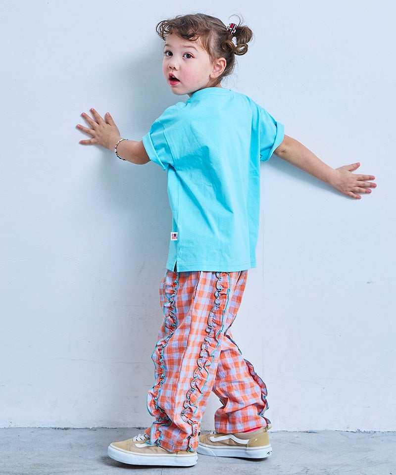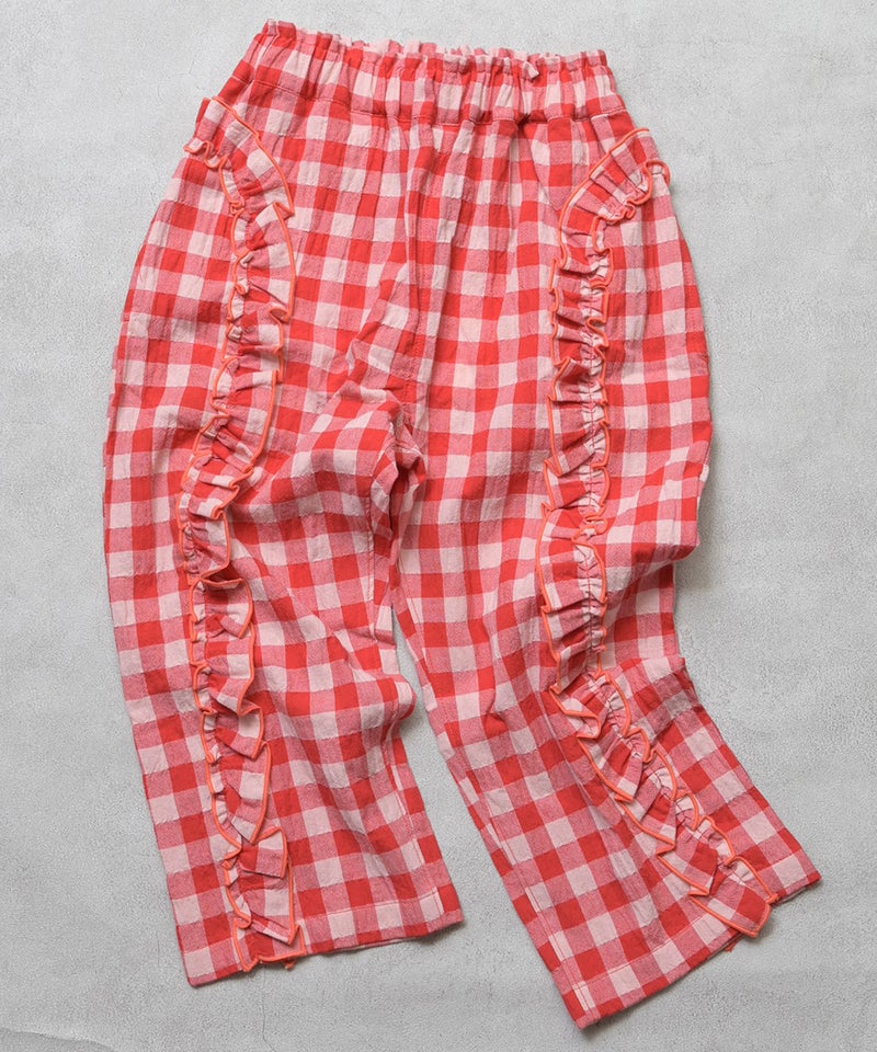 【親子お揃い】ギンガムラウンドフリルロングパンツ
