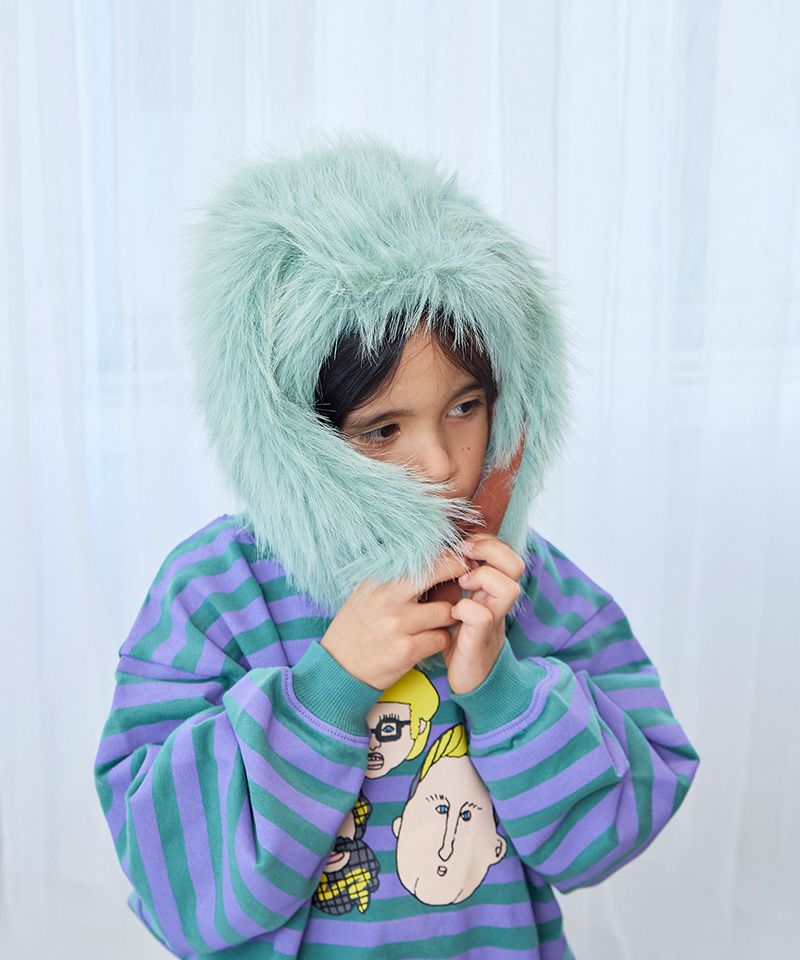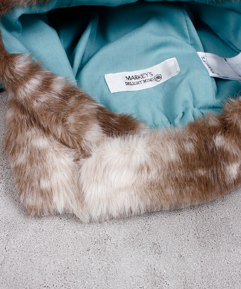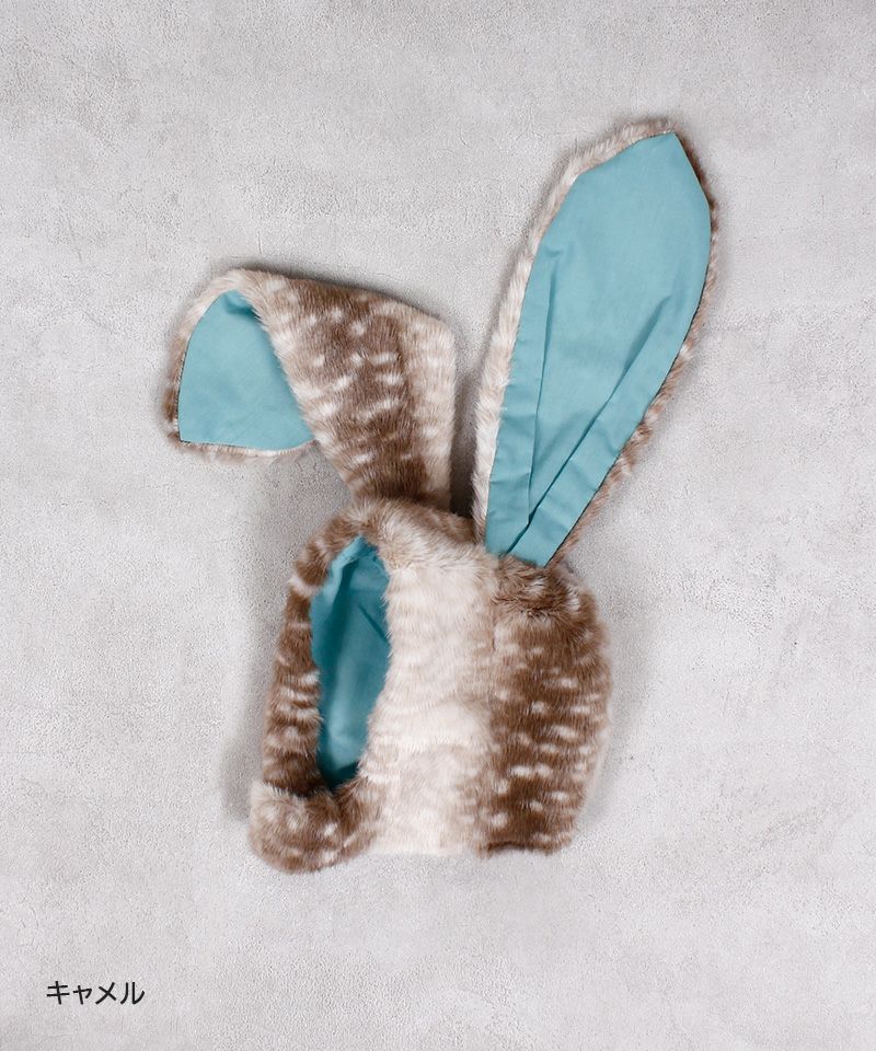 ふんわりとしたフェイクファーに、長めの“うさみみ”が付いた遊び心あるデザイン。