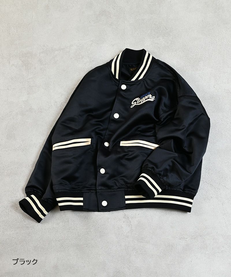 つややかなサテン生地を使用した、存在感たっぷりのジャケット。