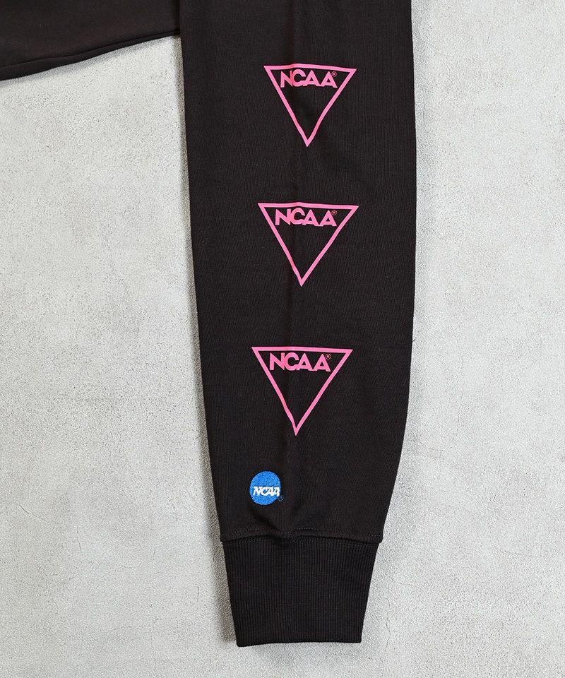 色んな“NCAA”のブランドロゴがデザインがされているスウェット。