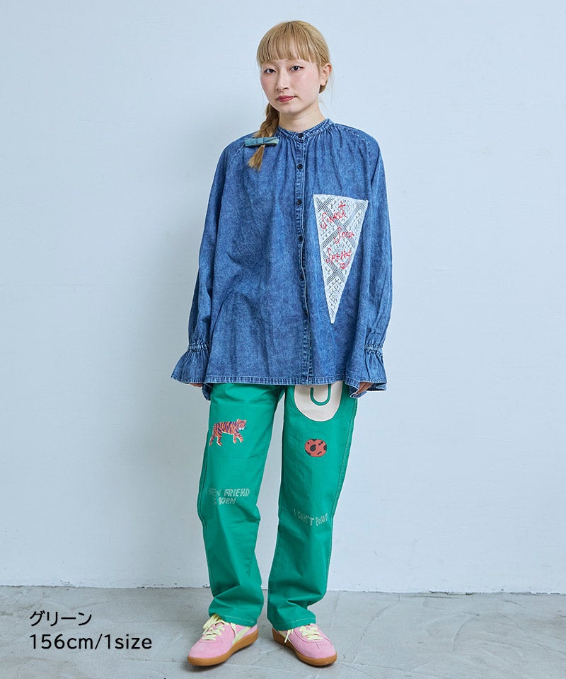レースポイントデニムブラウス / 大人サイズ