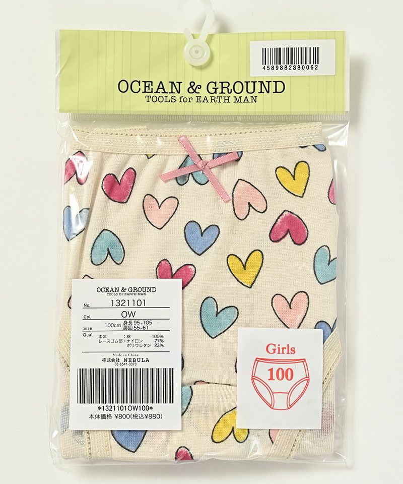 ウエストゴムの配色もポイントになり、OCEAN&GROUND オリジナル柄プリントが映えて、お着替えも楽しくなっちゃう♪