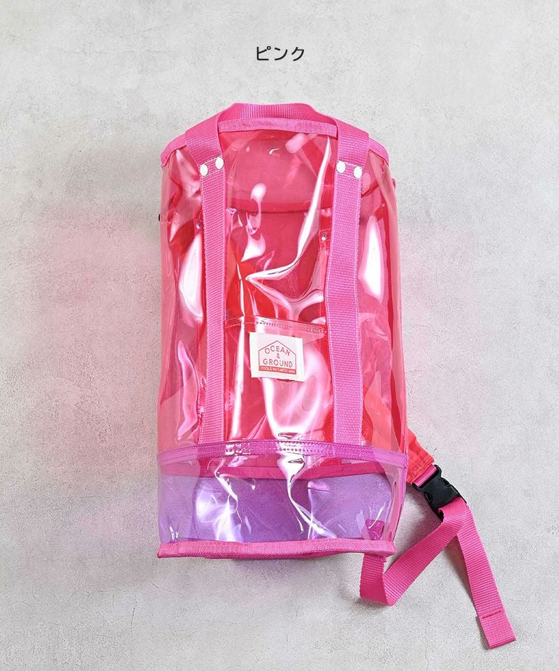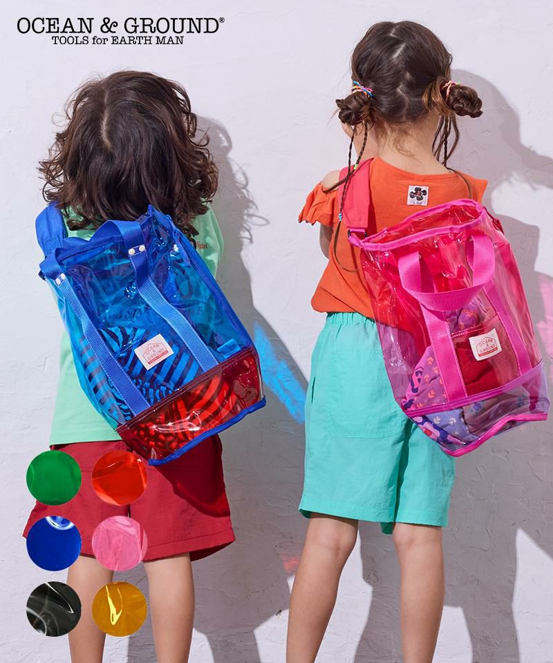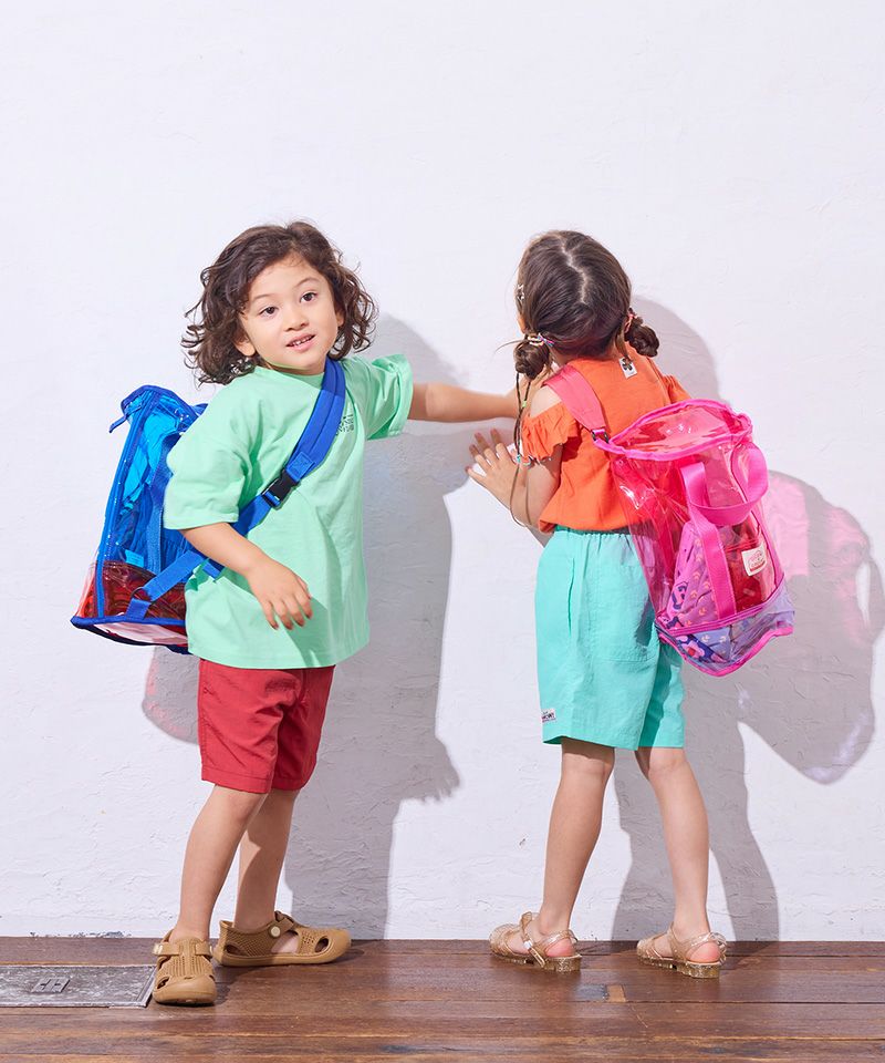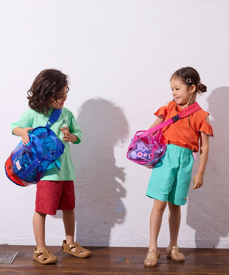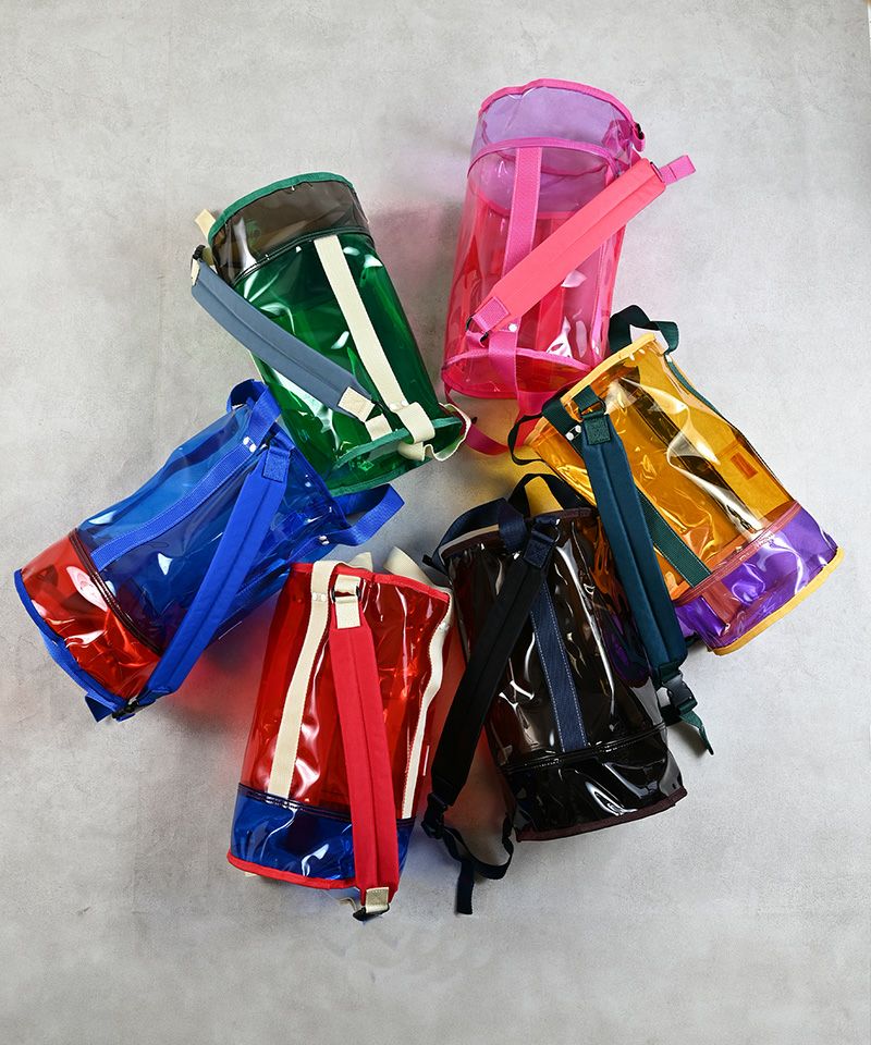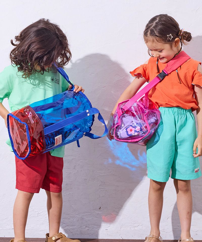 定番のプールバッグはクリアなパキッとした色味の配色が夏らしい☆