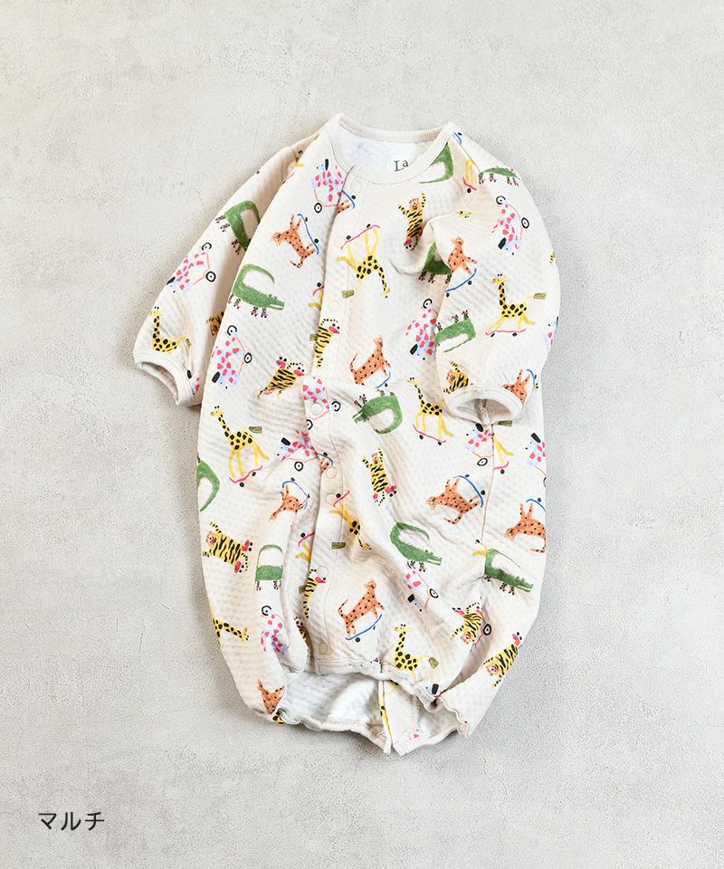 赤ちゃんらしいシンプルな総柄模様が、可愛らしさを引き立てます。