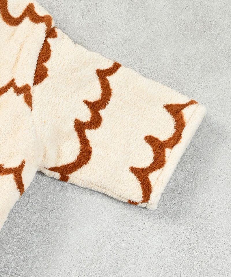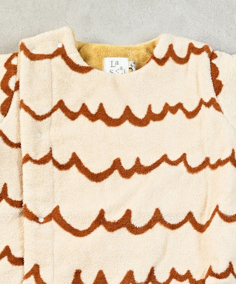 波模様のようなユニークな総柄デザインで、かわいらしさと遊び心をプラス。