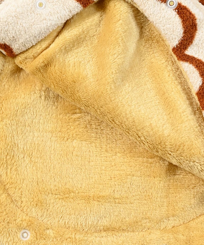 ふんわりと厚みのあるフリースタッチの素材で、あたたかくやさしい肌ざわり。