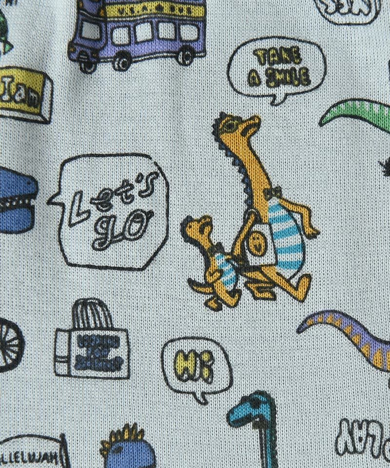 コミカルなタッチで描かれた個性的な恐竜たちのイラストがかわいい総柄とカラフルなステッカー風のグラフィクをランダムに散りばめたポップな総柄の2種類からお選びいただけます!