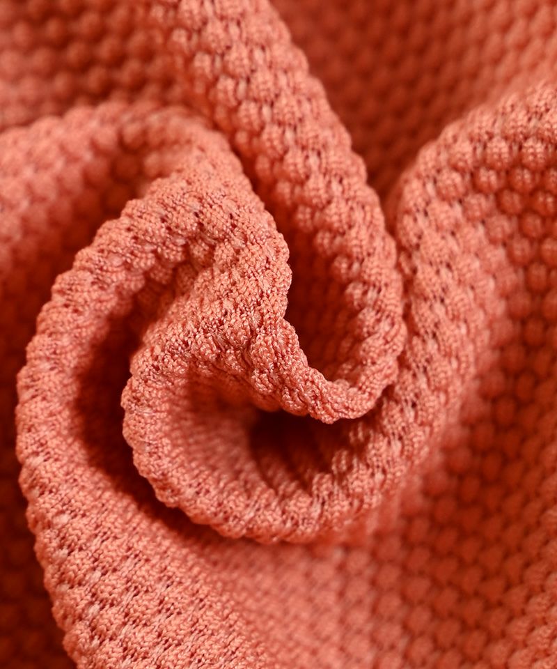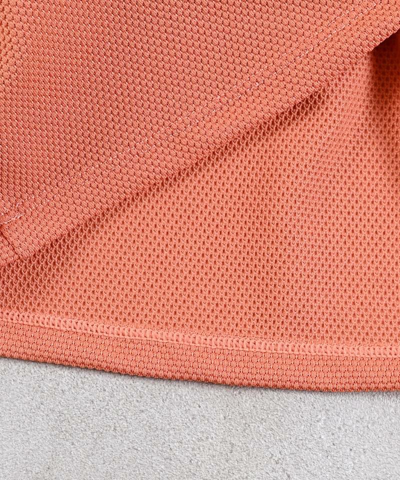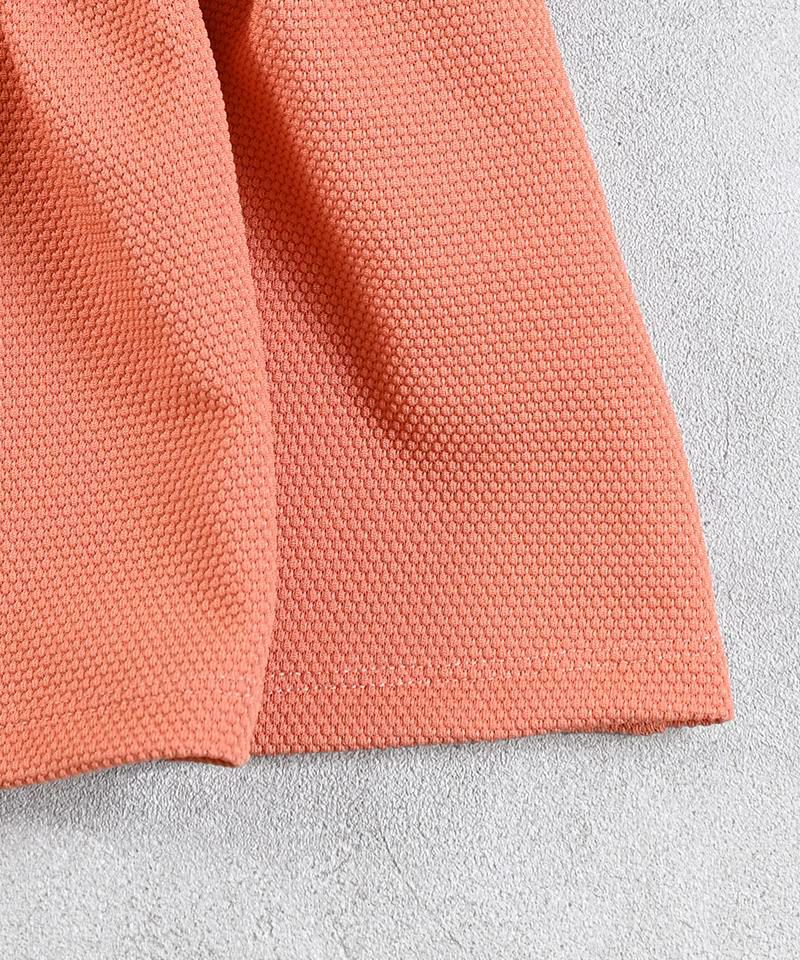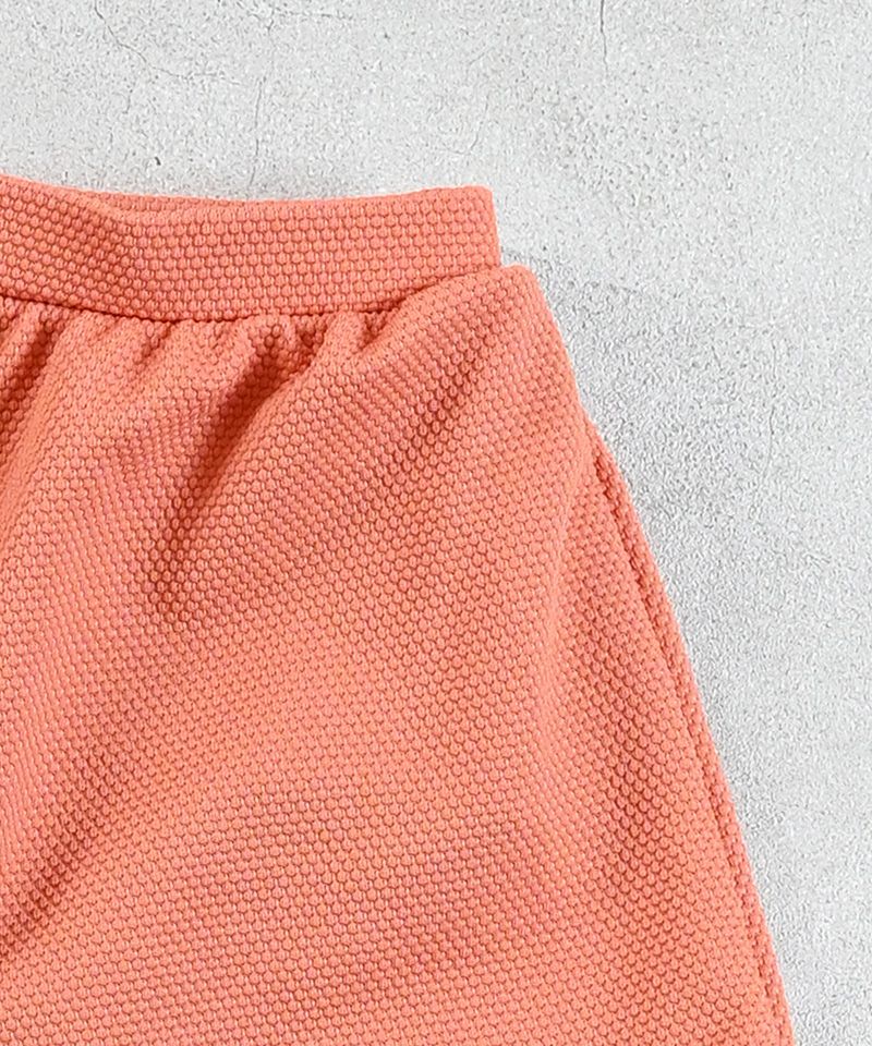 ライトパープルとオレンジ配色は凹凸感のある柔らかいストレッチワッフル素材。