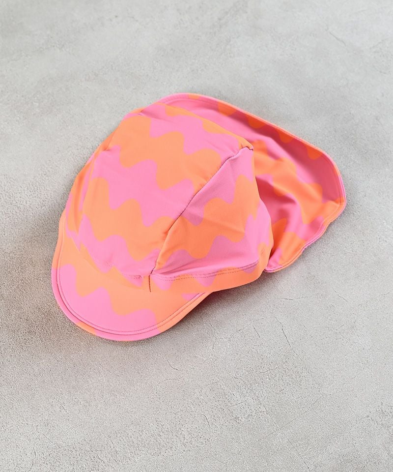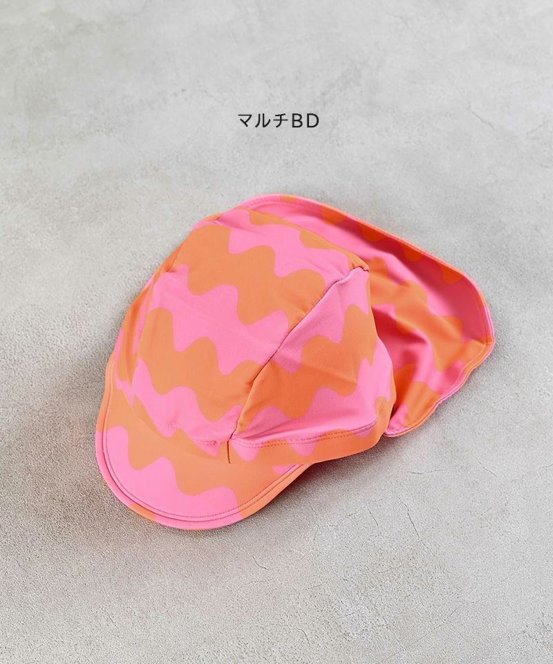 柔らかい芯の入ったツバと、日よけガードがついたスイムキャップ。