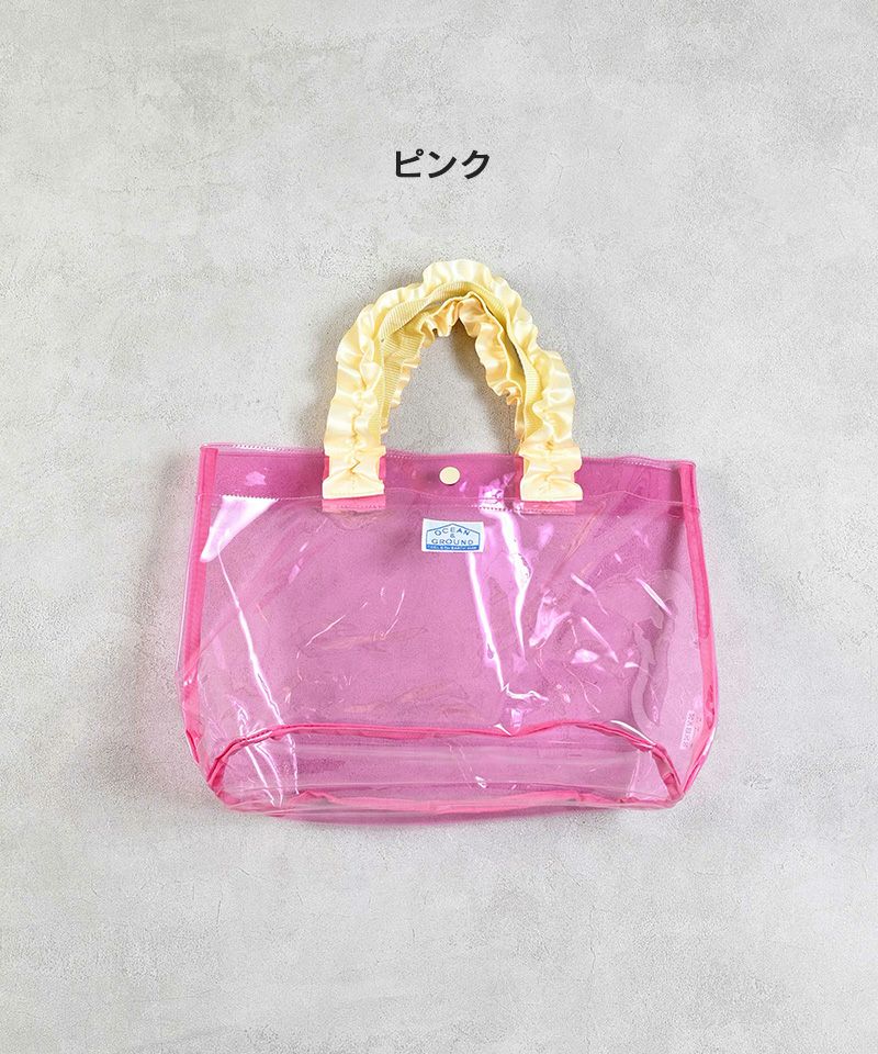 持ち手のフリルがとても女の子らしいプールバッグ。