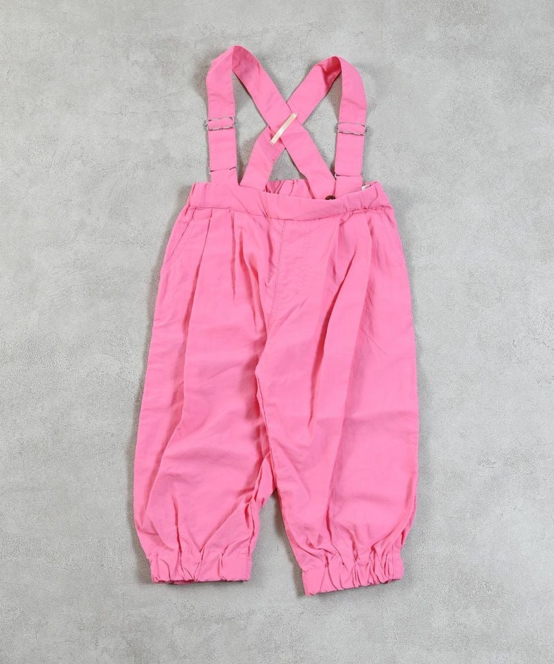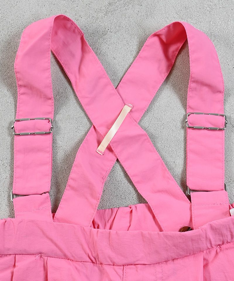たっぷりとしたボリュームシルエットながら、軽やかな着用感のサスペンダーパンツ。