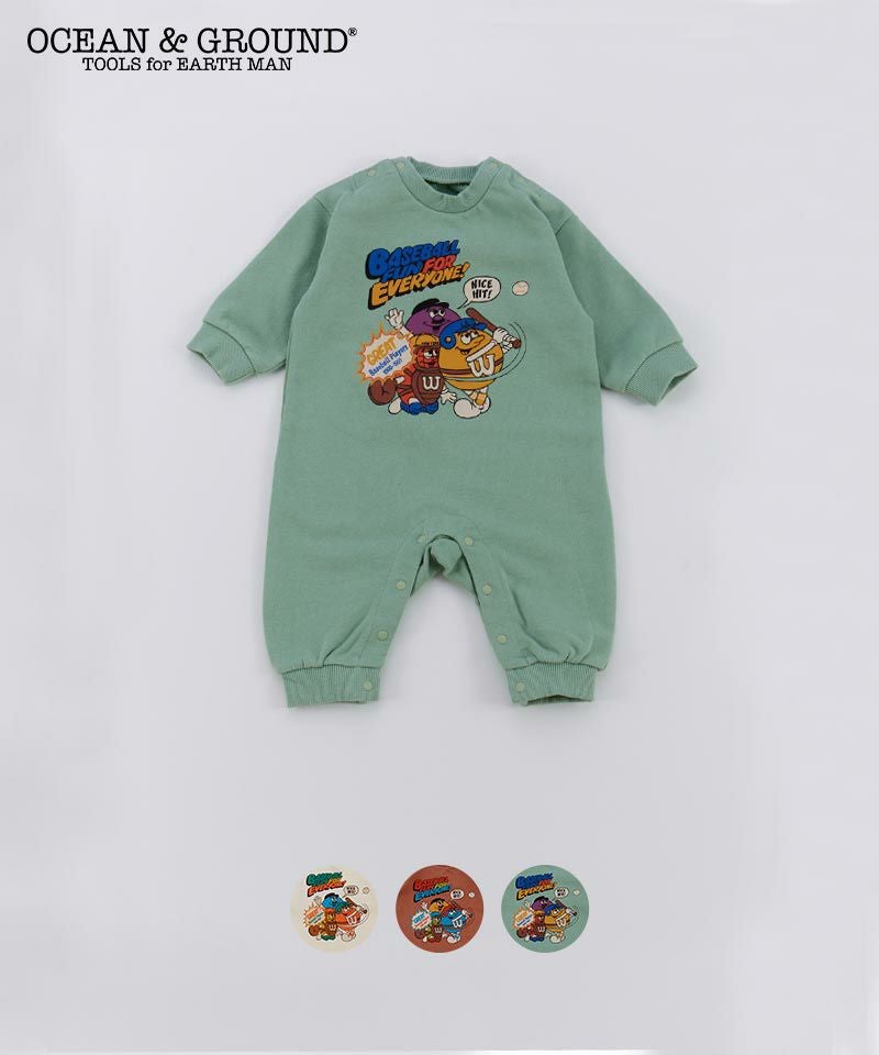 【遊び心のあるパロディキャラプリントが可愛い長袖ロンパス】