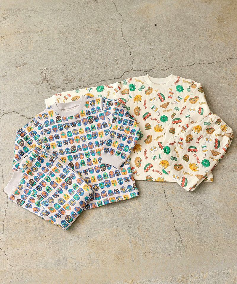 どちらも上下セットで、おうち時間が楽しくなるようなデザインに仕上げています。