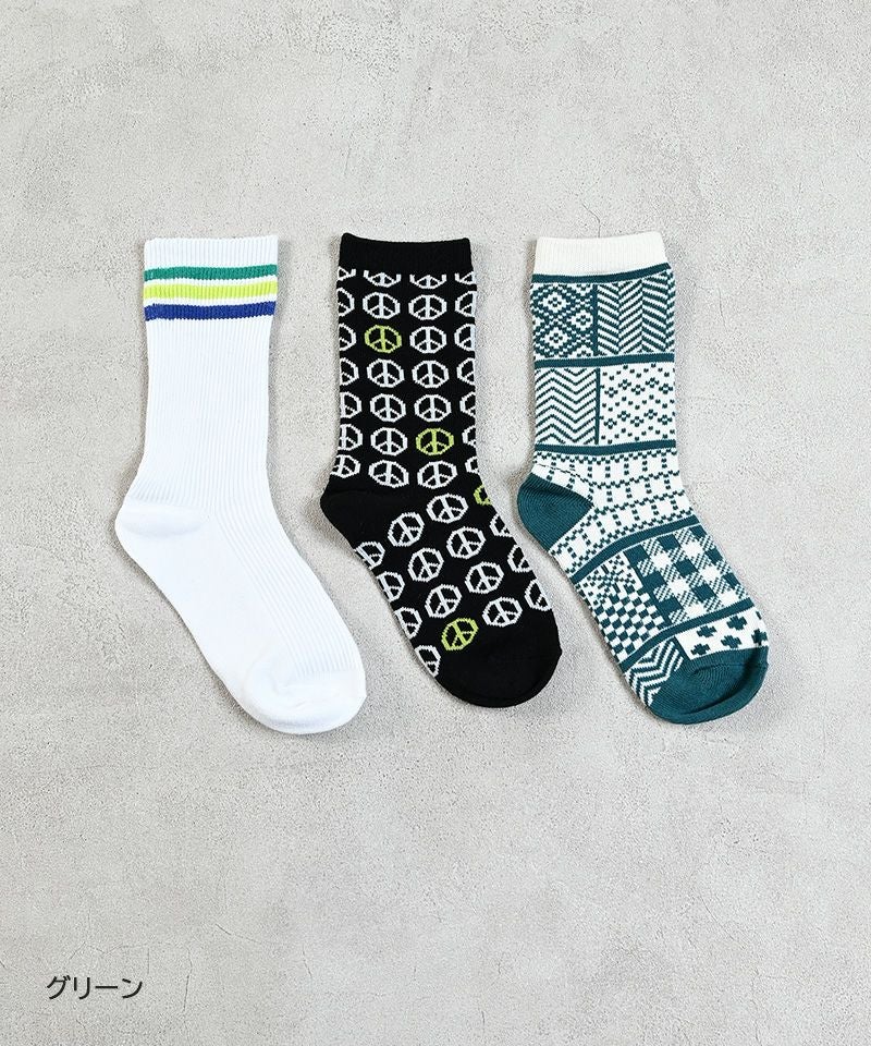 カラフルで遊び心ある柄やカラーを組み合わせた3足セット。
