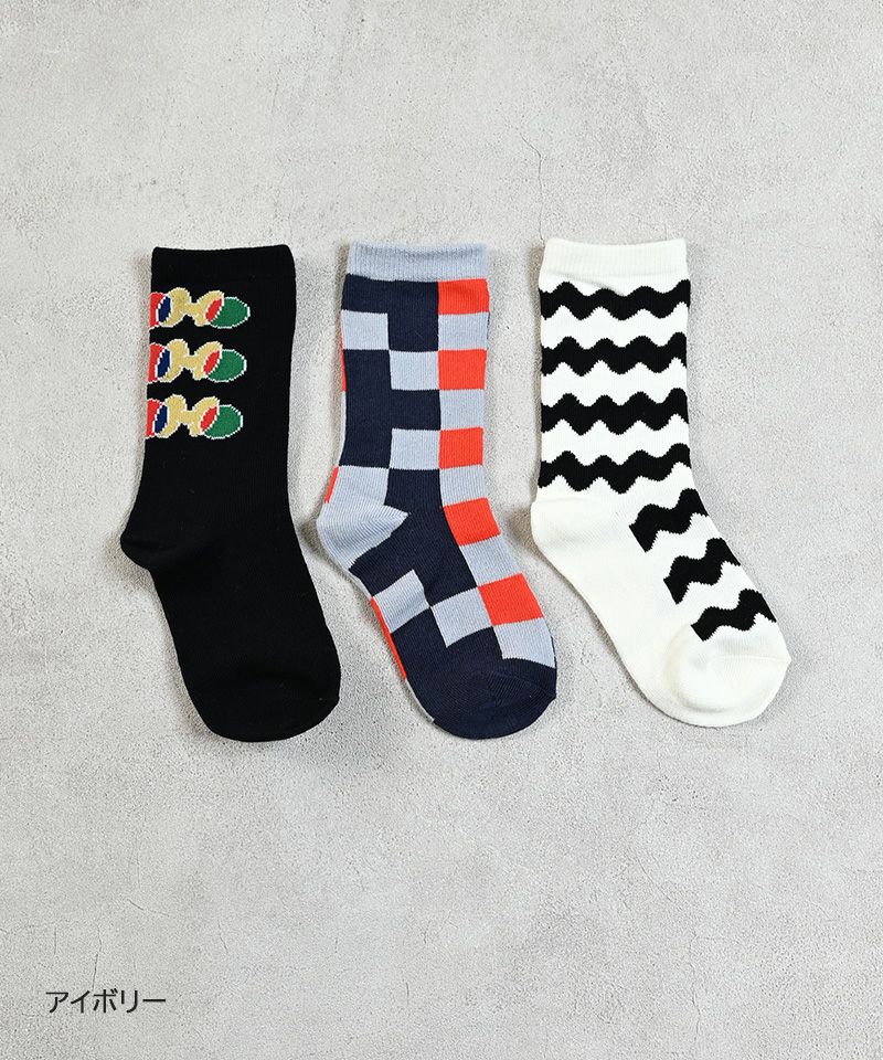 カラフルで遊び心ある柄やカラーを組み合わせた3足セット。