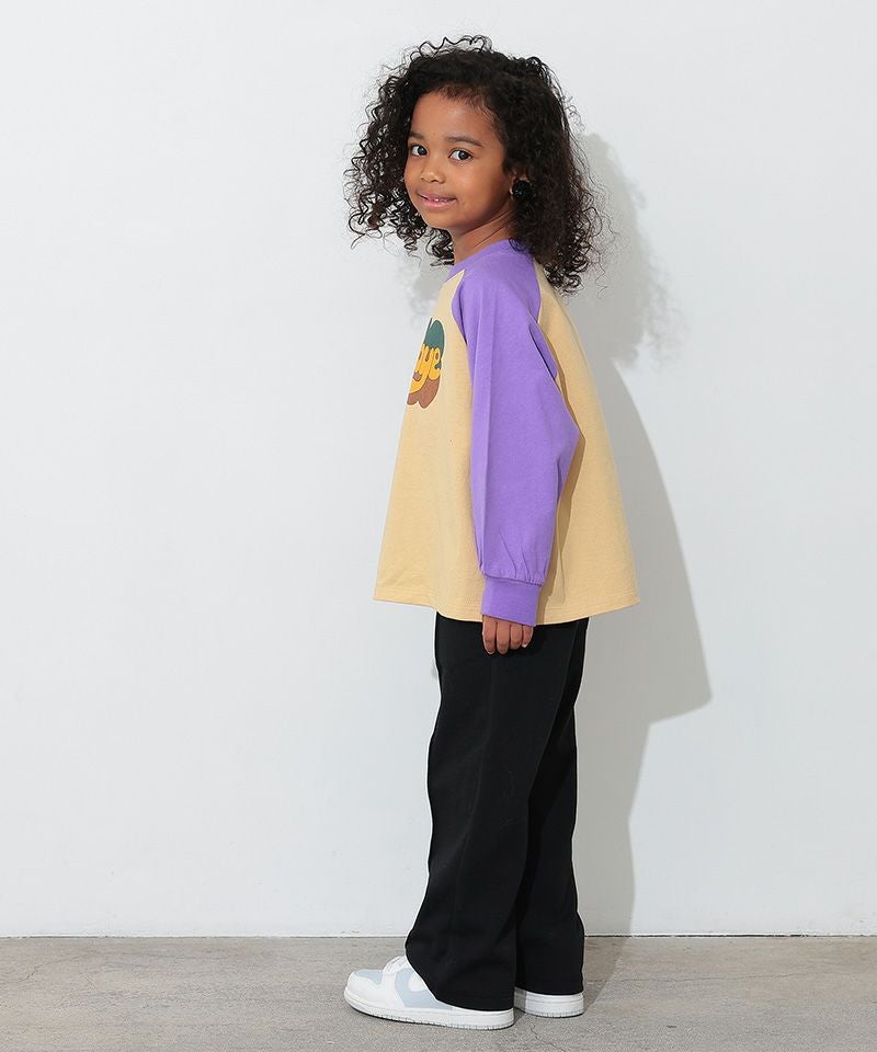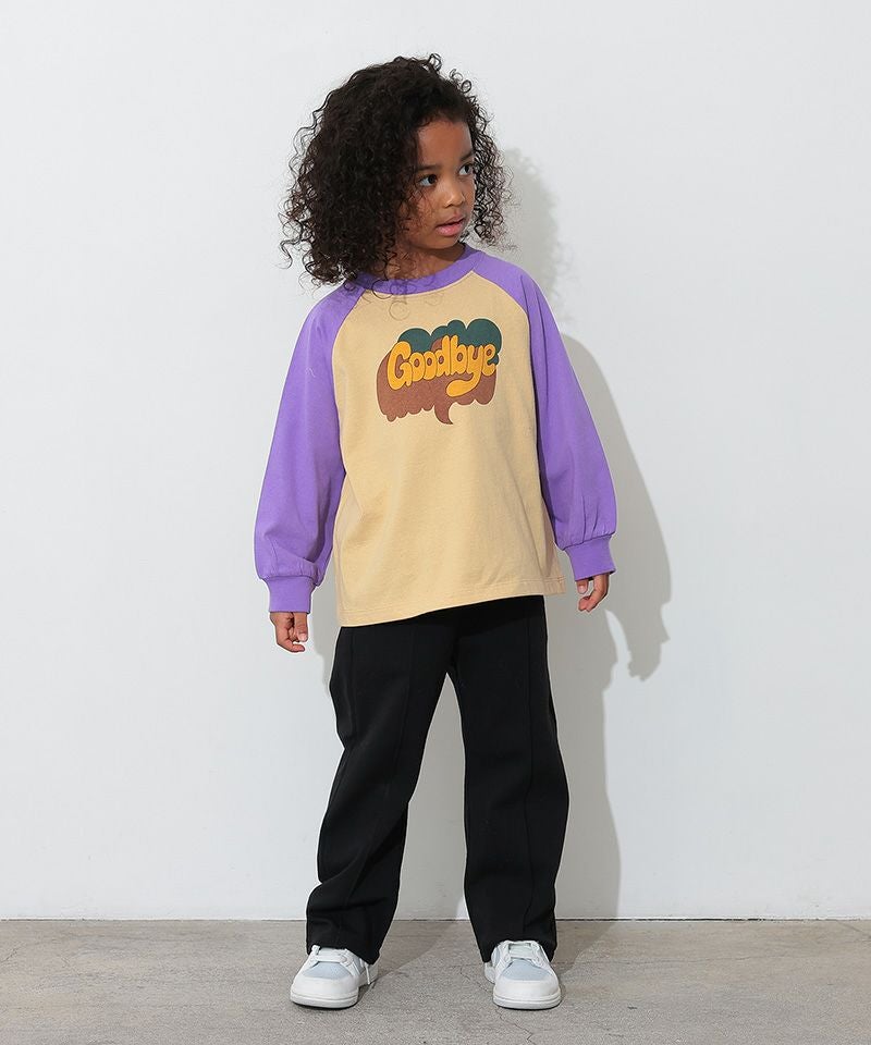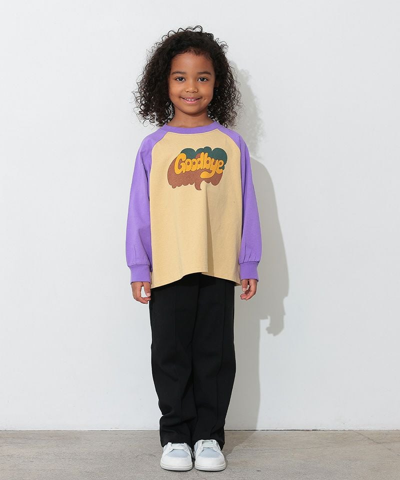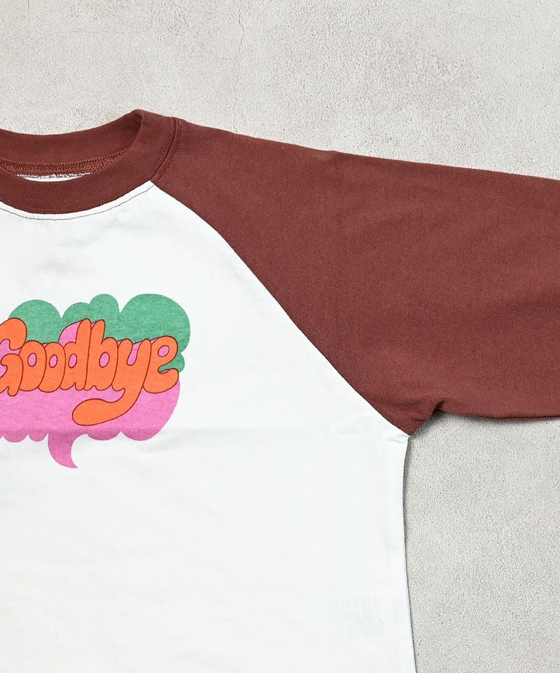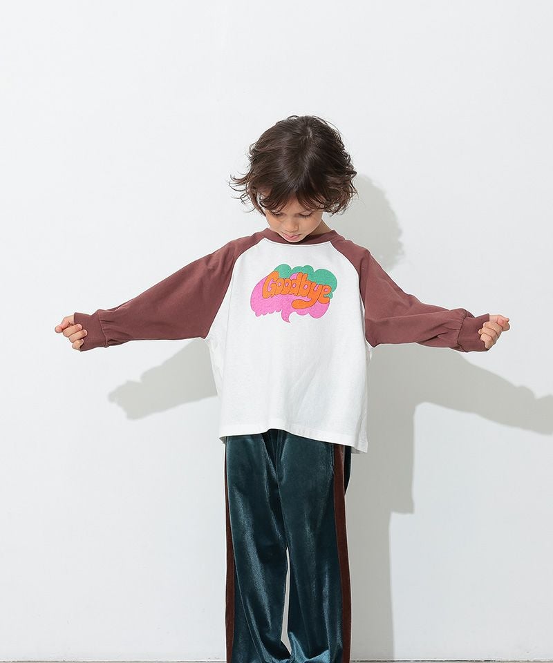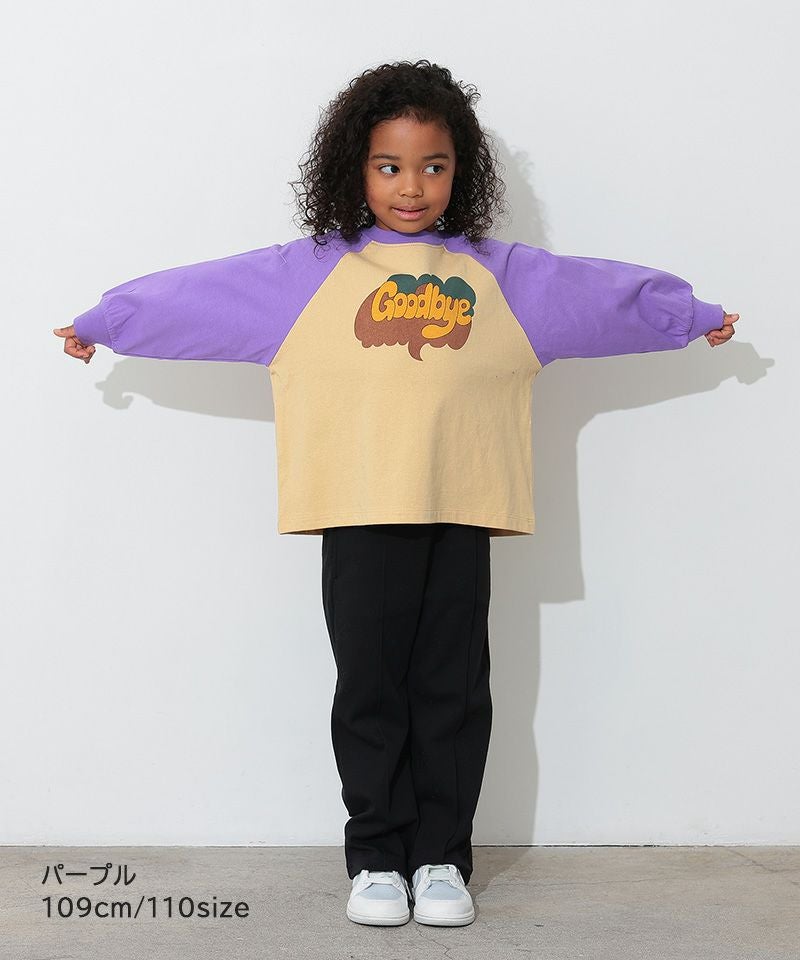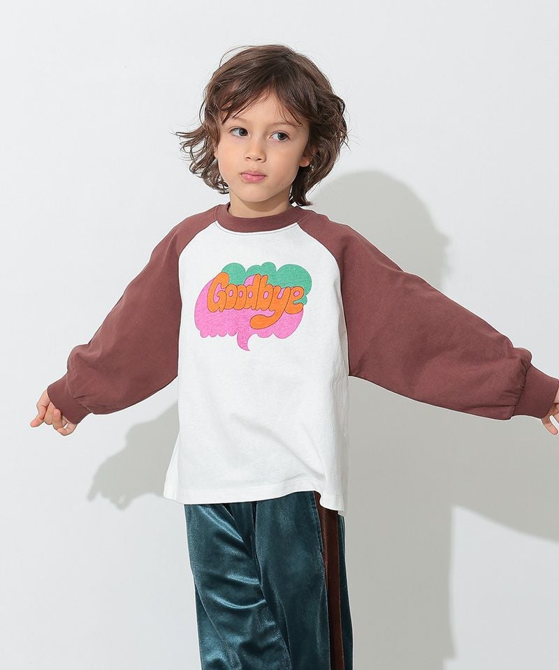 カラフルでキャッチーなロゴプリントが目を引く、ラグランTシャツ。
