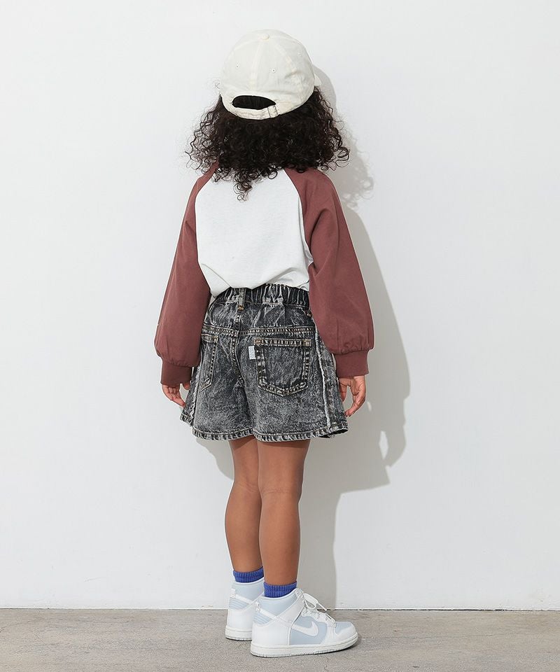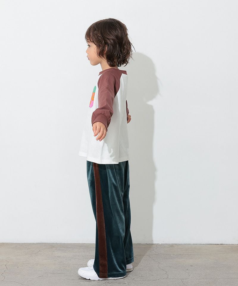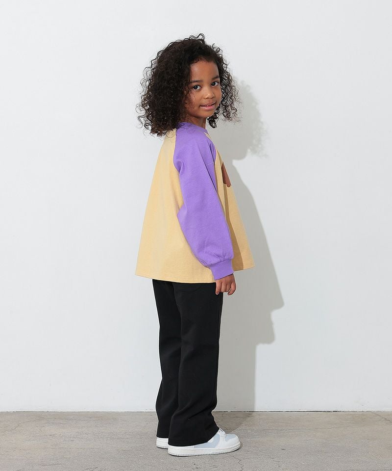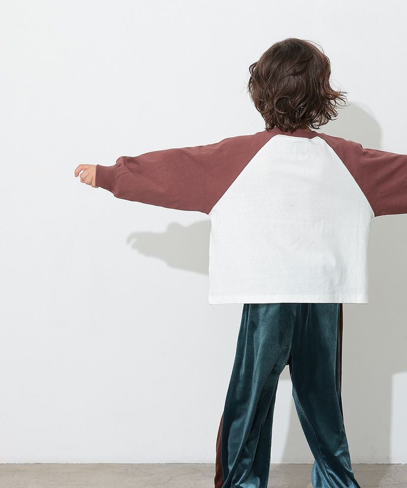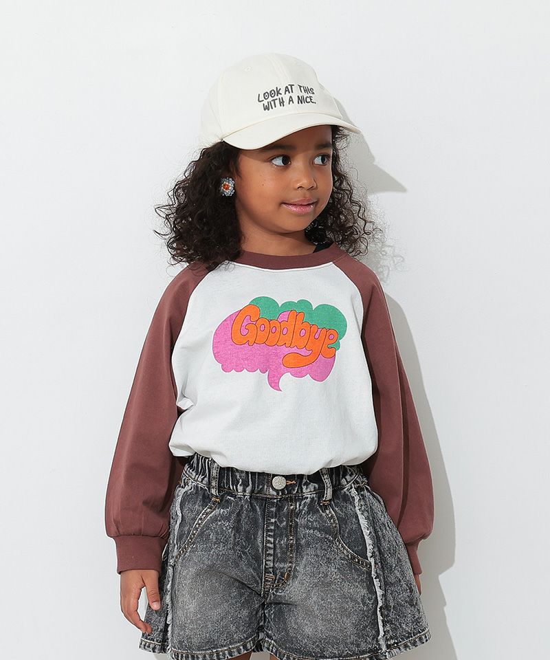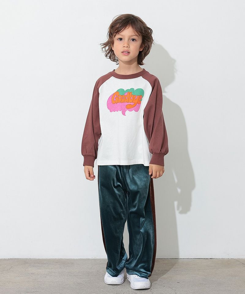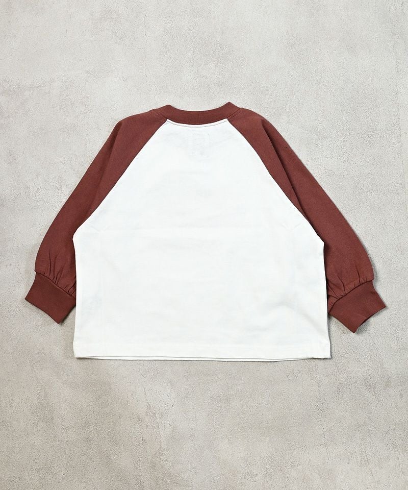 カラフルでキャッチーなロゴプリントが目を引く、ラグランTシャツ。