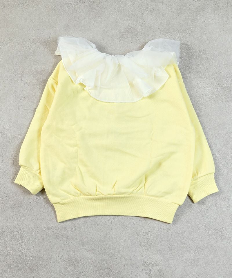 首元とにふんわりフリルをあしらったガーリーなスウェット。